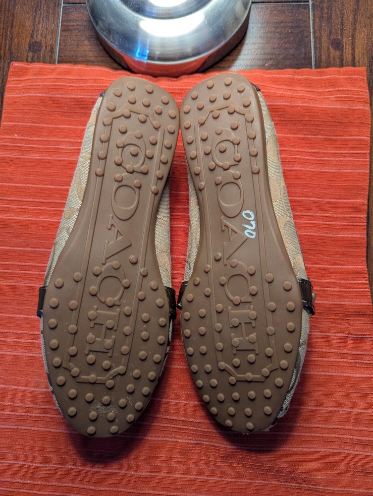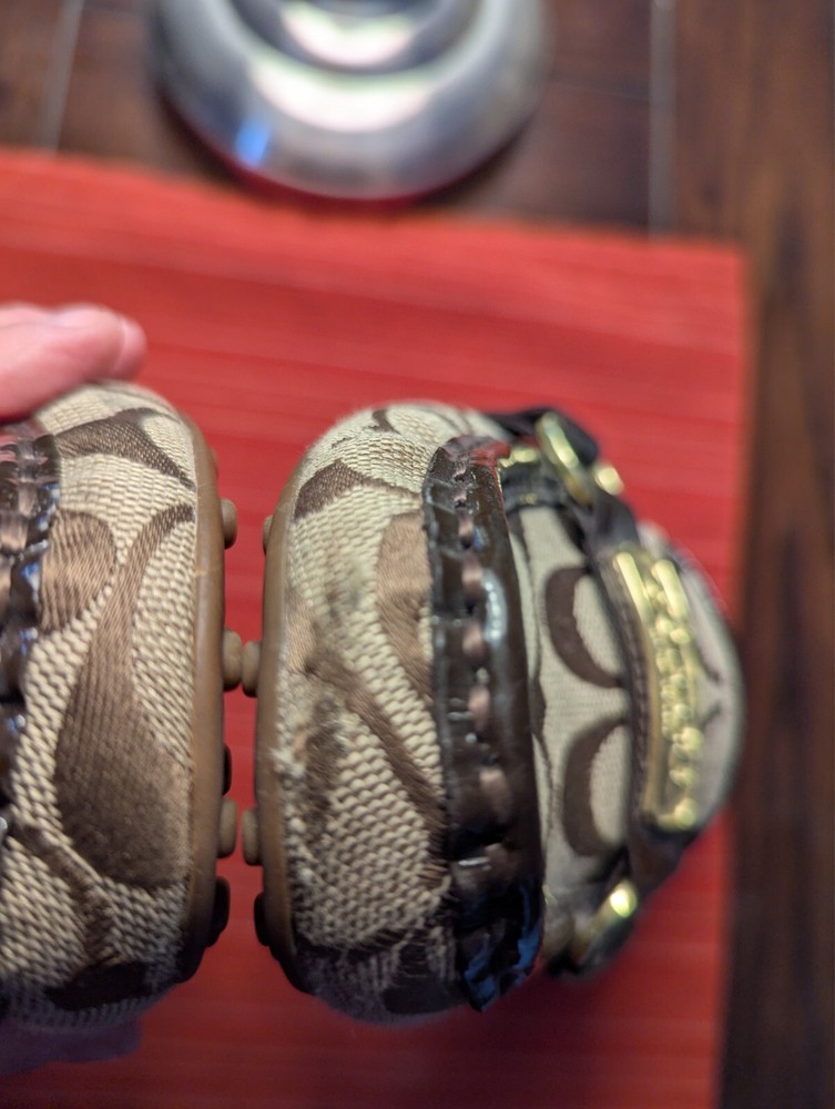 These loafers are so chic and comfy—perfect for dressing up or keeping it casual! The soft cotton upper feels great, and the classic Coach C logo adds a luxe touch. They show a bit of wear at the toe, but that just gives them character. Love how versatile they are—goes with everything! A great find for any stylish woman.
