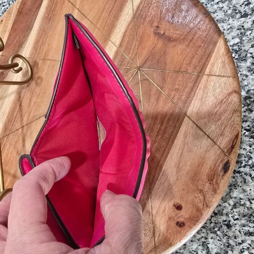 Seven credit card slots Bill compartment ID window Snap closure Zip coin pocket 5" (L) x 3 1/2" (H) x 1/2" (W) Style No. C3454 Use one time