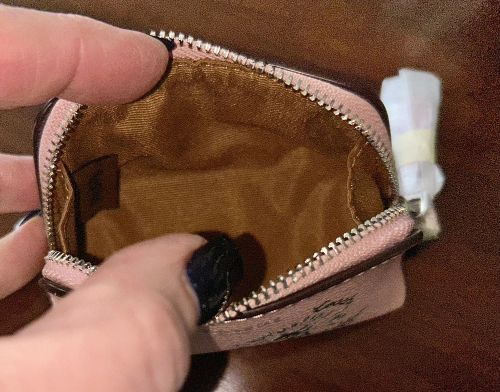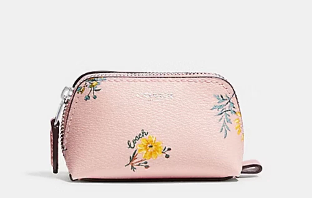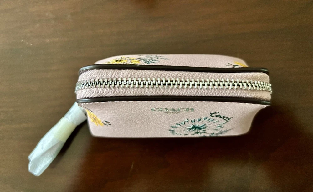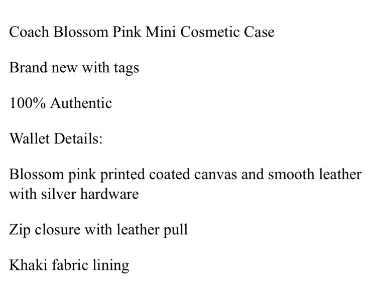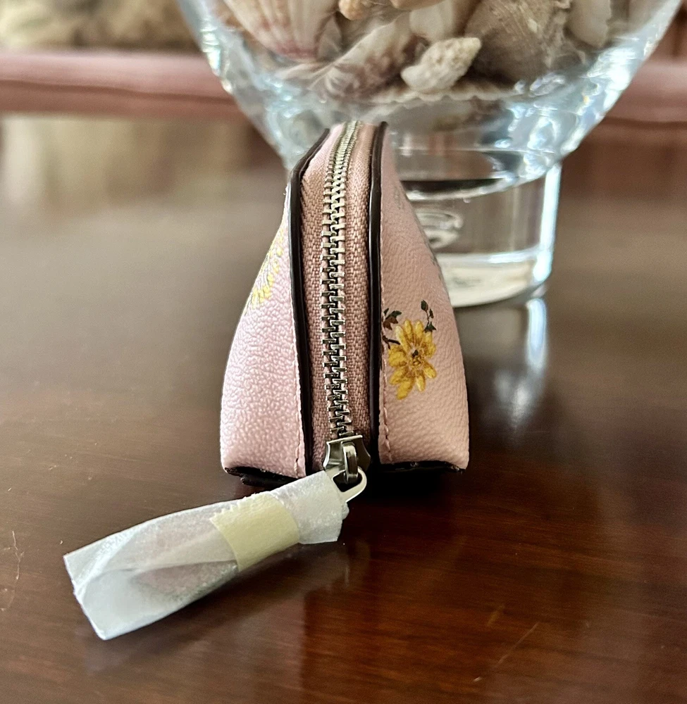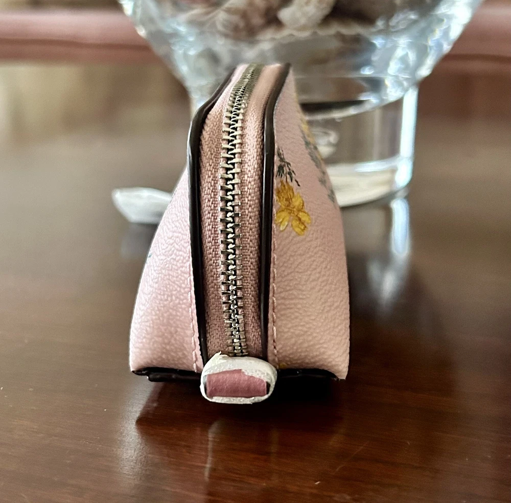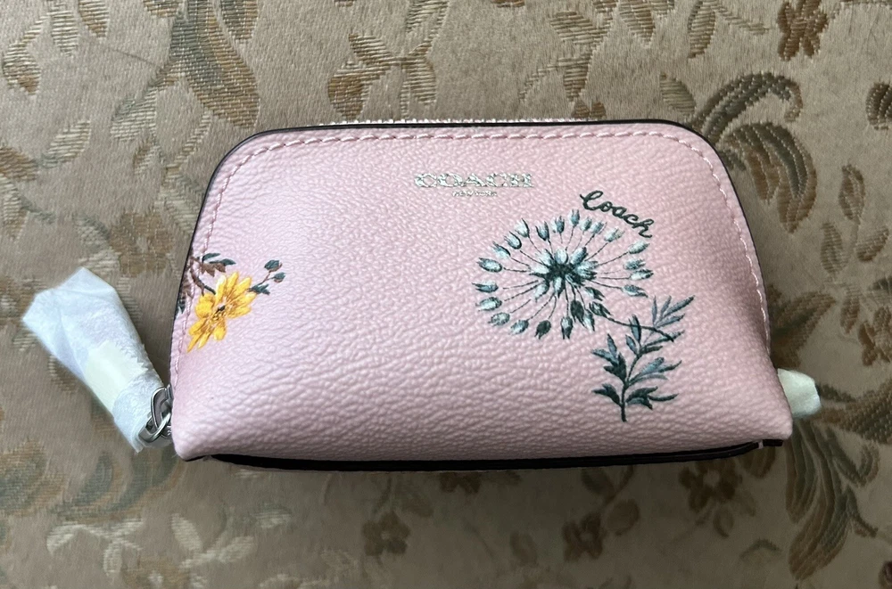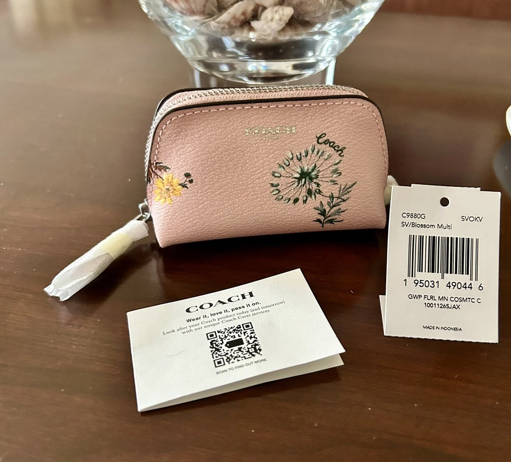 Coach Blossom Pink Mini Cosmetic Case Brand new with tags 100% Authentic Wallet Details: Blossom pink printed coated canvas and smooth leather with silver hardware Zip closure with leather pull Khaki fabric lining Approx. measurements: 4.25" X 3.25" X 2" Style No. C9880G Price is firm No return