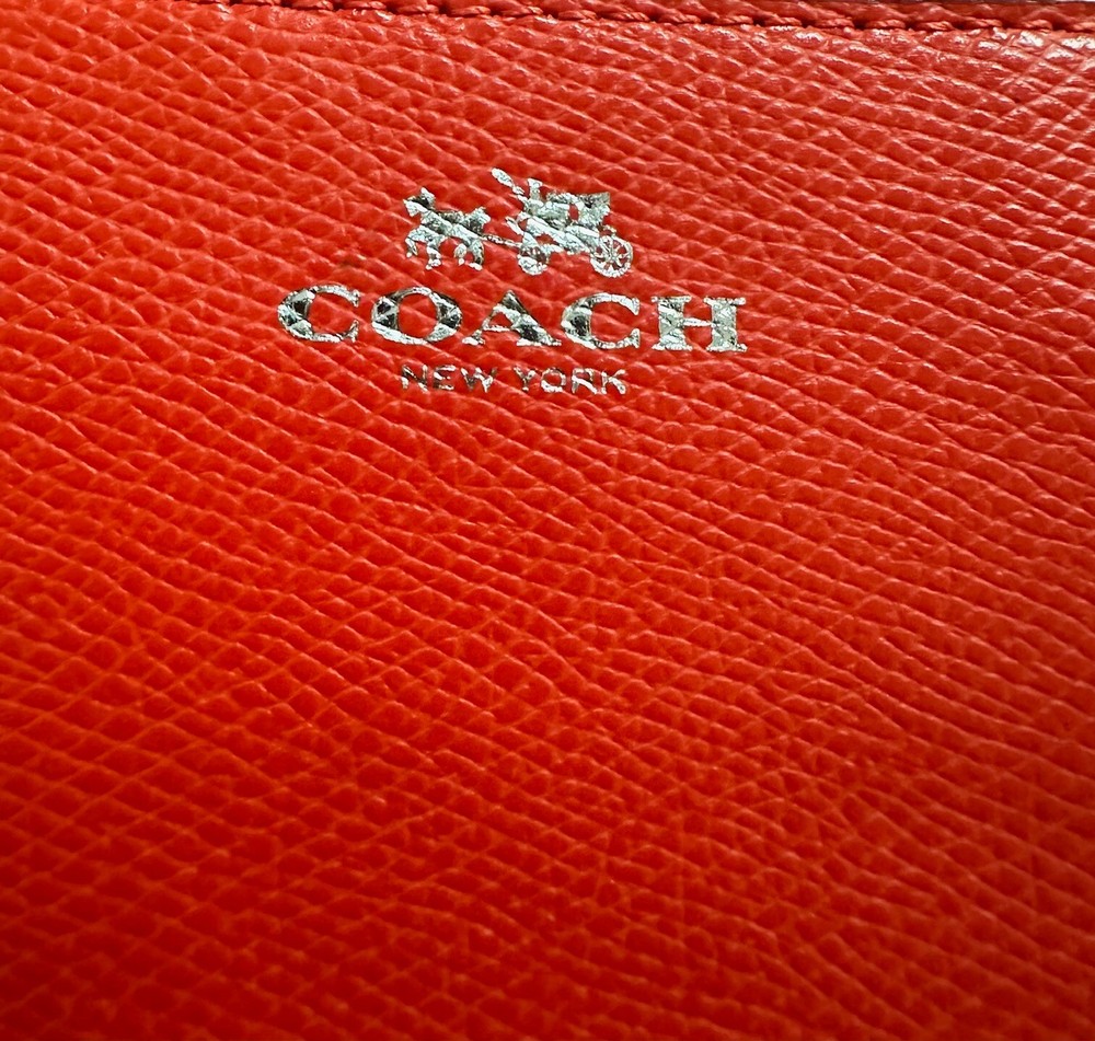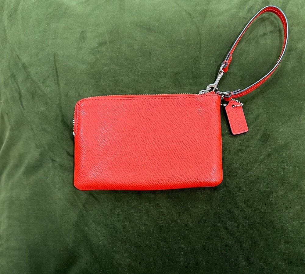 This wristlet is a must-have—sleek, functional, and eye-catching! The rich orange-red shade is gorgeous, and the pebbled leather feels luxe. It’s surprisingly roomy for its size, with a smooth zip closure and chic gold accents. Perfect for nights out or everyday use—holds cards, cash, and essentials without bulk. Coach quality shines through in every detail! Love how it elevates any look effortlessly.