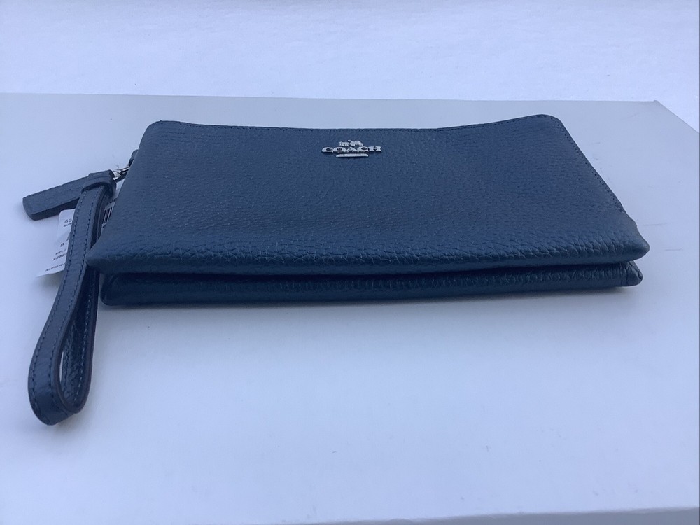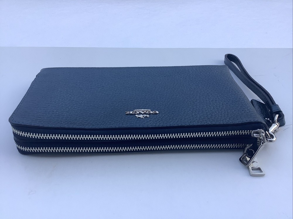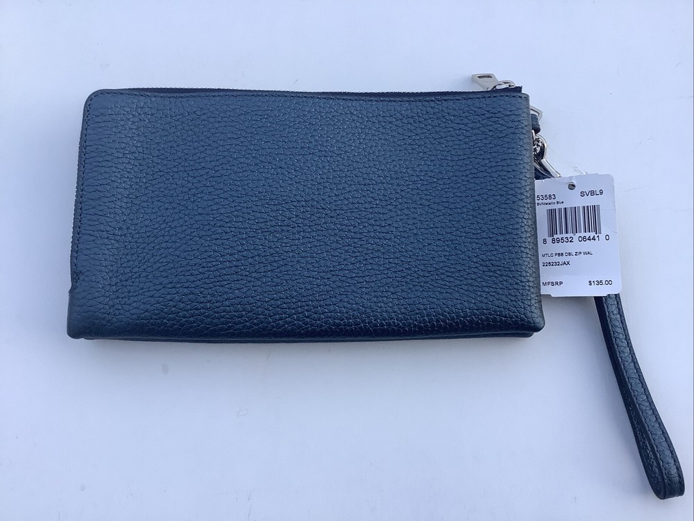 Coach Pebbled Metallic Leather Double Zip Wallet Clutch F53583 Metallic Blue Brand New with tags Rare color