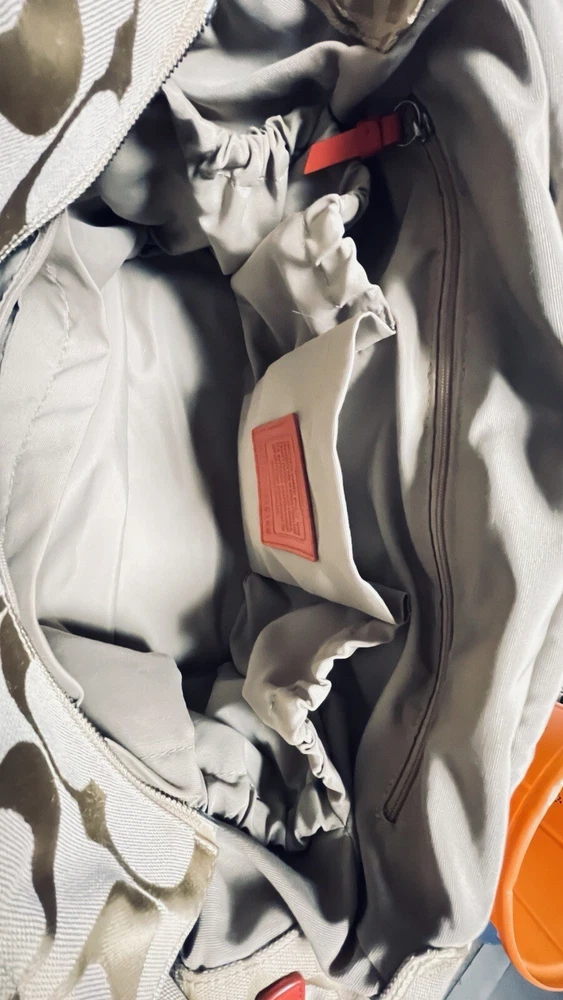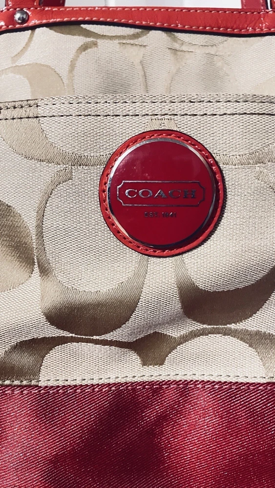Like New and Excellent Condition! Coach Sateen shoulder bag is a stylish and versatile accessory for any woman. With a bright pink exterior and ivory lining, it features a zip closure and double handles with an 8-inch drop. The bag has a large size of 18 inches in width, 12 inches in height, and 6 inches in depth, making it perfect for travel, casual outings, or business meetings. Very clean inside and out. Used one time. No stains rips or tears. The bag also has a vintage feel with a logo pattern and silver and gold hardware. It includes several features such as a bottle pocket, inner pockets, and an adjustable strap. The nylon lining material and satin exterior material ensure durability and elegance. This Coach Sateen shoulder bag is a must-have for any fashion-conscious woman.