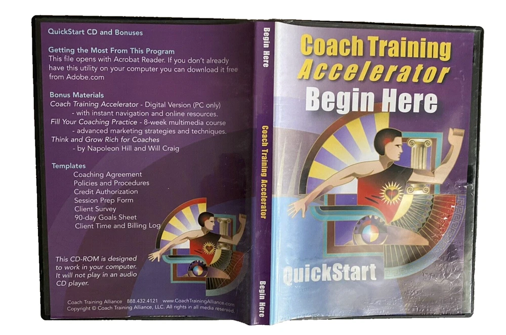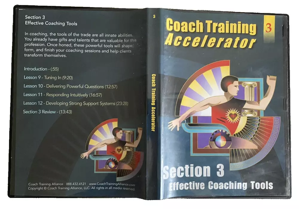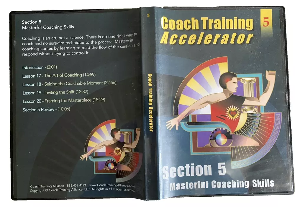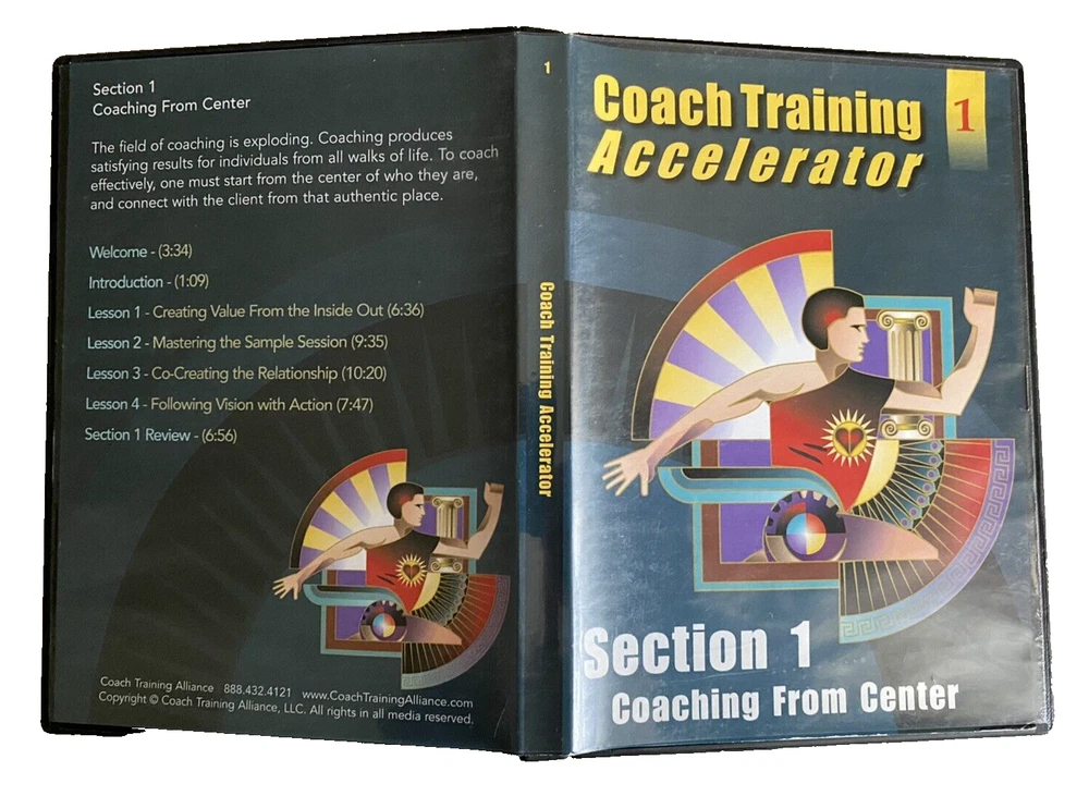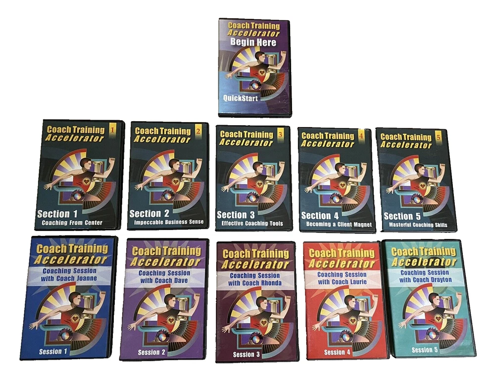 Complete Life Coach Training! Coach Training Accelerator -11 Training DVDs +Training Course & Resource Library by Coach Training Alliance Excellent pre-owned condition. Complete 11 CD-Rom/DVD Set includes the following: -Coach Training Accelerator Quick Start -Coach Training Accelerator -Section 1 Coaching from Center -Coach Training Accelerator -Section 2 Impeccable Business Sense -Coach Training Accelerator -Section 3 Effective Coaching Tools -Coach Training Accelerator -Section 4 Becoming A Client Magnet -Coach Training Accelerator -Section 5 Masterful Coaching Skills -Session 1 Coaching Session with Coach Joanne -Session 2 Coaching Session with Coach Dave -Session 3 Coaching Session with Coach Rhonda -Session 4 Coaching Session with Coach Laurie -Session 5 Coaching Session with Coach Drayton Questions? Please ask. Ships next business day.