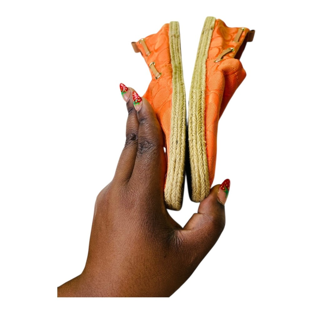 Coach Womens Slip On Monogram Logo Flat Espadrille Shoes Orange Size 7M Gently worn, excellent condition Stylish slip-on espadrille design with Coach’s iconic monogram logo Bright orange color for a fun, bold look Comfortable flat espadrille style perfect for casual wear Size 7M – true to size with a comfortable, relaxed fit Ideal for summer outings, beach days, or casual events Excellent pre-owned condition (See photos for exact condition) Any questions please ask Thanks for shopping with shinco2020