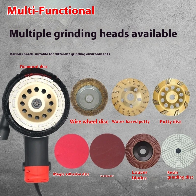 Coarse planer wall grinder putty dust-free concrete cement f loor grinder tool High Power Engineering Machine Rough Grinder Concrete Grinding/Cement Floor Grinding/Wall Grinding Epoxy Floor Grinding & Polishing/Stone Polishing High Power Motor Strong Motor Long Lasting Use Without Burning 90° Dead Angle Grinding Performance Comprehensively Upgraded Can be Matched with Vacuum Cleaner Dust-Free Grinding is Healthier Hardened Gear Rugged & Durable High Ratio