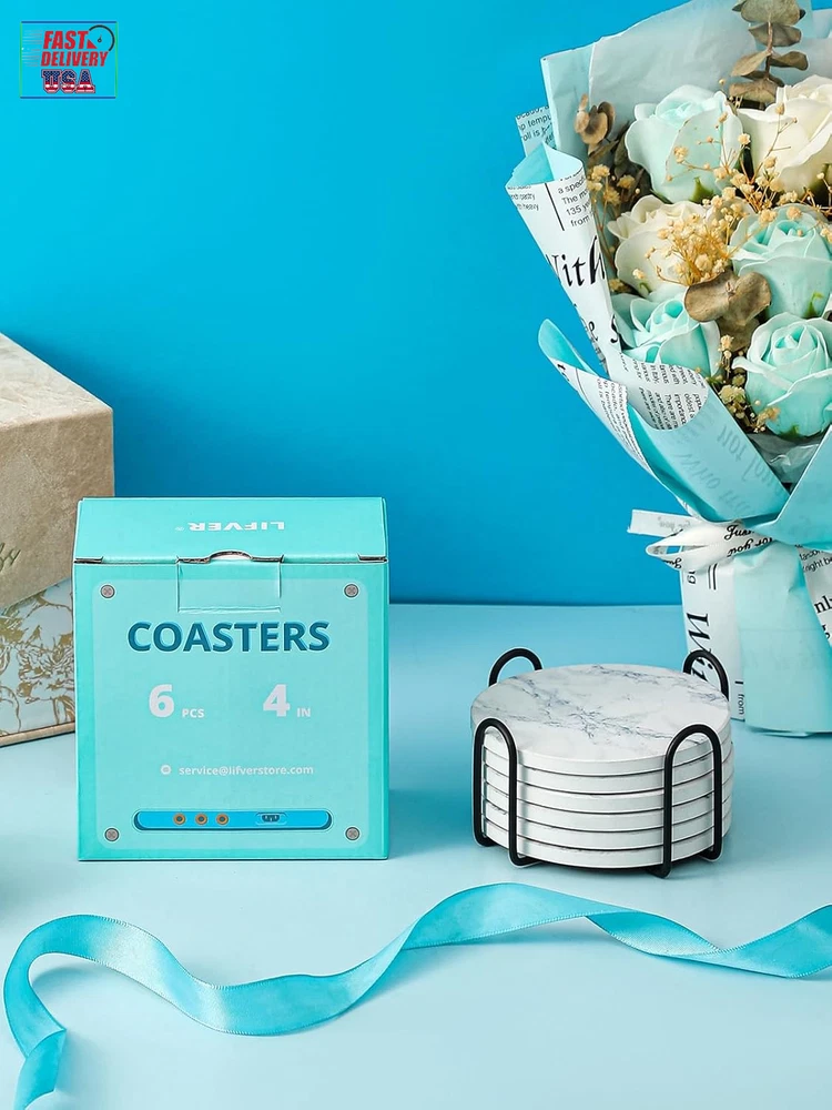 Store New Arrivals Add to Favorite View Feedback Contact Coasters for Drinks, White Marble-Style Absorbent Coasters with Holder, Housewarming Gifts for Home Decor, Suitable for Kinds of Cups, 4 Inches, Set of 6 Description Number of Items 6 Color Ivory Marble Material Porcelain Is Dishwasher Safe No Item Weight 1.5 pounds Shape Round Product Dimensions 3"L x 3"W Product Care Instructions Water Size 6 Pack Perfect Size: Coasters set of 6 with a 4-inch diameter and 0.27-inch thickness, these drink coasters with holder fit a wide variety of cups and glasses, providing ample space to catch drips and condensation, making it versatile for normal drinkware Strong Absorption: Coasters for drinks are made to absorb moisture effectively, this absorbent coasters keep surfaces dry and clean. Perfect for hot and cold drinks, it stands out with superior absorption, leaving no water rings behind Non-Slip: Stone coasters equipped with a cork backing to prevent slipping, it stays securely in place on any table. Unlike silicone, fabric, or other materials, the ceramic surface holds cups steady, ensuring stability for different types of drinks Surface Protection: Thirstystone coasters protect wooden and marble tables from scratches and moisture damage. Marble coasters with an absorbent ceramic top and cork backing prevent liquid residue from damaging your furniture, preserving your surfaces Stylish & Giftable: Ceramic coasters with a natural stone look, this modern coaster complement coffee tables and marble surfaces beautifully. Many customers consider sandstone coasters as an ideal white elephant gifts for adult useful, often recommended by friends Product Description Drinks start with LIFVER coasters Protect your table surface! Coasters are must-have for all houses, as they are not only home decor, but also protector for your new furnitures. LIFVER coasters will help capture moisture from ice cold drinks and protect surfaces from hot coffee cups. And the 4 inch drink coasters set is big enough for beer/whisky/glass cups and mugs. Whether you are looking for housewarming present or a unique accessory to add to your cocktail bar-ware set, this complete coaster set will not disappoint you. The video showcases the product in use. The video guides you through product setup. The video compares multiple products. The video shows the product being unpacked. LIFVER Sandstone Absorbent Drinks Coasters with Holder Strong Water Absorption - Special absorbent ceramic, water absorption is completed in about 5-10 seconds Cork Bottom - The coaster is equipped with a cork backing to prevent scratches on the table Appearance Patent - professional designer design, registered appearance patent Simple and Classy Style - Suitable for all kinds of home decoration perfect size 4 inch size, suitable for all kinds of cups and beverages Cork Bottom The coaster is equipped with a cork backing to prevent scratches on the table Hand washable With dark drinks, it can be quickly rinsed and dried to reduce stains on ceramic coasters Best gift They also make an excellent gift choice. Their stylish design and multifunctional nature make them ideal Christmas gifts, Mother's Day gifts, and housewarming gifts. 1 outdoor coasters 2 coasters for dining table 3 coasters for desk 4 coasters for coffee table ABOUT US We offer the best prices around on high quality products. Our E-store includes media such as books, movies, music and games while offering electronics, toys, sporting apparel, clothing, tools, general home, garden items and more. SHIPPING We are always working hard to ensure your package arrives as soon as possible. Please understand that some factors like weather, high postal traffic, and the performance of shipping companies are outside of our control. We offer free shipping to the lower 48 states and ship within 2 business days of payment, usually sooner. We do not accept P.O. Boxes. Please provide a physical address. For shipping outside of the continental USA, we only use eBay's Global Shipping Program.The item is shipped to KY and then sent to the rest of the world. International customers are responsible for all duties and taxes. Continue to check out in order to calculate costs for shipping the item to your country. Messages regarding eBay's Global Shipping Program MUST be directed at eBay EXCLUSIVELY. RETURNS We offer a 30-Day Return Policy on items which you are not completely satisfied with. You have the option for a full-refund or an exchange of the item. No returns are available on items shipped outside of the USA. PAYMENT We accept PayPal. CONTACT US This page content is yet to come Please ad us to your favorite seller and visit again later Thank You CUSTOMER SATISFACTION We try our very best to make sure every customer is completely satisfied. If there's a problem, message us! We're happy to help. WE ACCEPT Copyright © 2021 AutoDS. | All Rights Reserved