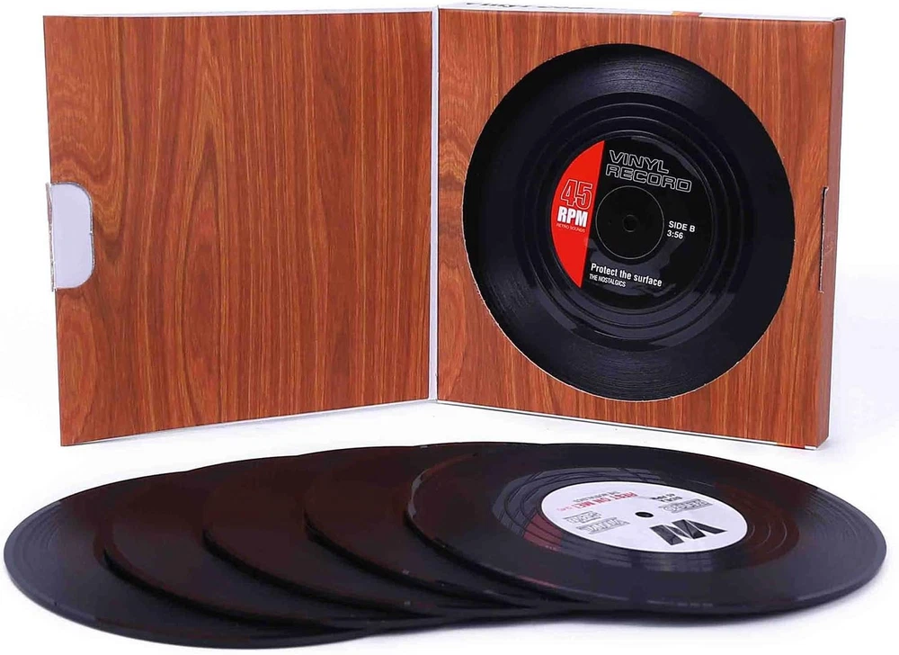 Coasters for Drinks with Gift Box - Set of 6 Colorful Retro Vinyl Black Product Details Color: Black Material: Plastic Brand: Ankzon Shape: Round Product Care Instructions: Hand Wash Only Is Dishwasher Safe: Yes Product Dimensions: 4.2"L x 4.2"W Manufacturer: Ankzon Item Weight: 1.6 ounces Item model number: AKCP Is Discontinued By Manufacturer: No ☑️ Perfect for Muisc Lover--Set of 6 in a gift box, they look like real vinyl records, every detail, cute and cool, great gift for music lovers and perfect for 80s parties. ☑️ Non-Slip Design--With a small rubber disc on the bottom, that makes sure that your table will be protected and non slip, at the same time fun and creative ☑️ Focus of discussion--Protect the surface of table from damage while putting hot or cold drinks on the table, Use the coasters when you serve some hot and cold drinks and it will make your guests feel nostalgic. ☑️ PERFECT GIFT - Nice package, perfect gifts for house warming, birthday, fathers' day mothers' day, christmas, great presents! ☑️ Perfect for Muisc Lover Set of 6 in a gift box, they look like real vinyl records, every detail, cute and cool, great gift for music lovers and perfect for 80s parties. ☑️ Non-Slip Design With a small rubber disc on the bottom, that makes sure that your table will be protected and non slip, at the same time fun and creative ☑️ Focus of discussion Protect the surface of table from damage while putting hot or cold drinks on the table, Use the coasters when you serve some hot and cold drinks and it will make your guests feel nostalgic. ☑️ GUARANTEE Protect the surface of table from damage while putting hot or cold drinks on the table, Use the coasters when you serve some hot and cold drinks and it will make your guests feel nostalgic.. ☑️ PERFECT GIFT Nice package, perfect gifts for house warming, birthday, fathers' day mothers' day, christmas, great presents!.