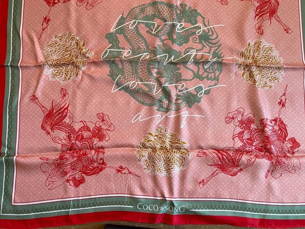 Authentic 100% silk scarf/wrap. Limited edition of 100. Coco Song Measures 90" square. Check out my other listings. I sell a variety of new and vintage items. Browse by see other items , or at my store Songbird’s treasure. Add me as a favorite seller or store. I list new items daily. Smoke free, pet free home! BUY WITH CONFIDENCE! Same user I.D. since 2003. I strive to provide quality items and excellent customer service. Thanks for looking and come back again!