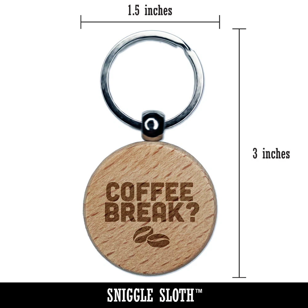 Coffee Break with Beans Engraved Wood Round Keychain Tag Charm