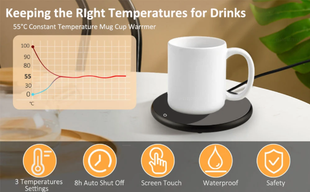 Mug Warmer USB Cup Warmer Coffee Cup Heater Thermostatic Heating Coaster Cup Electric Milk Tea Coffee Mug Warmer for Office Home Features: 1. Made of high quality material, safe and non-toxic and odorless. 2. It can be used to warm up the milk, tea, coffee, drinks and so on. 3. Lightweight and easy to carry, only takes little space. 4. 3 gear of temperature adjustment meet different needs. 5. Suitable for school, dormitory and office and home. 6. Simple operation with waterproof design. Please note: 1. There are two plug versions——black/black add 1m OTG extension cable 2. It can only keep your water warm, can't boil water.