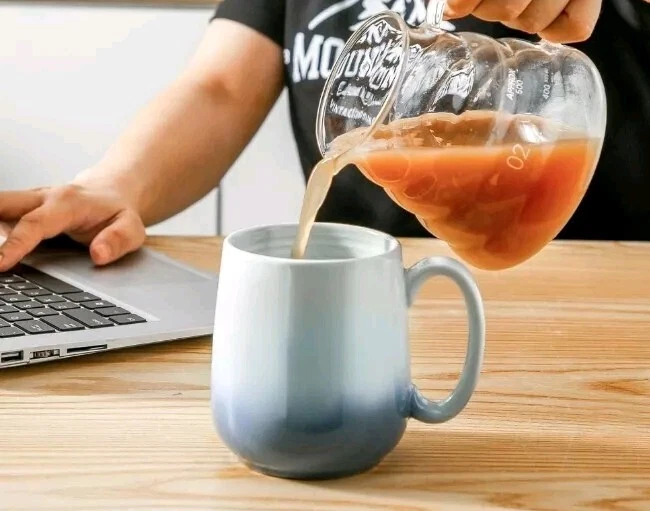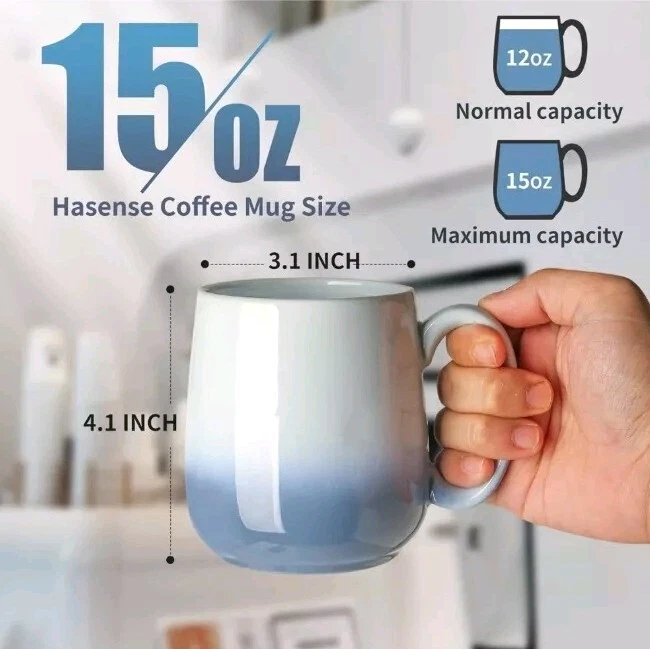 Coffee Cups, Tea Mug with Large Handle for Coffee, Latte, Milk and Mocha, Birthday Gift, Dishwasher & Microwave Safe, Gradient Light Blue