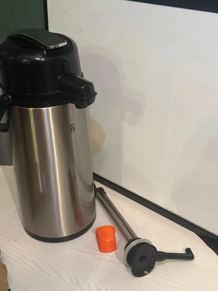 These are preowned airpot. work fine. They have some marks and small scratches of usage. it comes with extra pump part and opening orang cover.