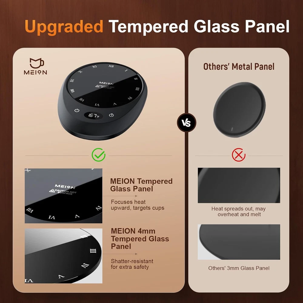 Store New Arrivals Add to Favorite View Feedback Contact Coffee Mug Warmer for Desk, Coffee Cup Warmer, 4 Temp Settings & 1-12H Timer, Coffee Warmer with Auto Shut off Smart Gravity Sensor, Beverage & Candle Warmer Coffee Gifts Accessories(Black) Description Item model number M-001 Maximum Temperature 185 Degrees Fahrenheit Power Source Corded Electric Color Black Upper Temperature Rating 185 Degrees Fahrenheit Wattage 50 watts Material Plastic, Tempered Glass Package Dimensions 9.72 x 6.38 x 1.93 inches Item Weight 15.8 ounces Voltage 110 Volts 【Customizable Mug Warmer】MEION mug warmer offers 4 customizable heat settings (131°F, 145°F, 167°F, and 185°F) and a 1–12 Hour Timer with auto shut-off. It is set to automatically turn off after 8 hours by default. Enjoy a warm beverage whenever you like. Note: With a lid on, drinks heat up faster. 【Intelligent Gravity Sensor Coffee Mug Warmer】Our coffee warmer features a Smart Gravity Sensor that automatically detects the placement of the cup. It turns off when you lift your cup and instantly resumes warming when it is placed back down, which prevents overheating. 【Upgraded Fast-heating Coffee Warmer for Desk】Experience the next level of convenience with our upgraded coffee cup warmer.It features an efficiency chip for fast-heating and an optimized structure to dissipate heat rapidly, ensuring a safe temperature. 【4mm Crack-Resistant tempered glass plate】The coffee warmer plate features a solid 4mm heating plate designed to prevent cracking. Unlike many others with thinner surfaces, our thickened design ensures lasting use and long-term performance. The 4.7 inch large heating panel fits most flat-bottom cups, including ceramic, glass, and large mugs, providing stable placement and even heating across the panel. 【Quality coffee accessories gifts】Our coffee mug warmer is crafted from quality materials and easy to clean with just a damp cloth. Its lightweight design ensures easy storage and carry between home, office, or travel settings.Whether it's a gift for yourself or a loved one, MEION cup warmer is thoughtful choice. Product description ABOUT US We offer the best prices around on high quality products. Our E-store includes media such as books, movies, music and games while offering electronics, toys, sporting apparel, clothing, tools, general home, garden items and more. SHIPPING We are always working hard to ensure your package arrives as soon as possible. Please understand that some factors like weather, high postal traffic, and the performance of shipping companies are outside of our control. We offer free shipping to the lower 48 states and ship within 2 business days of payment, usually sooner. We do not accept P.O. Boxes. Please provide a physical address. For shipping outside of the continental USA, we only use eBay's Global Shipping Program.The item is shipped to KY and then sent to the rest of the world. International customers are responsible for all duties and taxes. Continue to check out in order to calculate costs for shipping the item to your country. Messages regarding eBay's Global Shipping Program MUST be directed at eBay EXCLUSIVELY. RETURNS We offer a 30-Day Return Policy on items which you are not completely satisfied with. You have the option for a full-refund or an exchange of the item. No returns are available on items shipped outside of the USA. PAYMENT We accept PayPal. CONTACT US This page content is yet to come Please ad us to your favorite seller and visit again later Thank You CUSTOMER SATISFACTION We try our very best to make sure every customer is completely satisfied. If there's a problem, message us! We're happy to help. WE ACCEPT Copyright © 2021 AutoDS. | All Rights Reserved