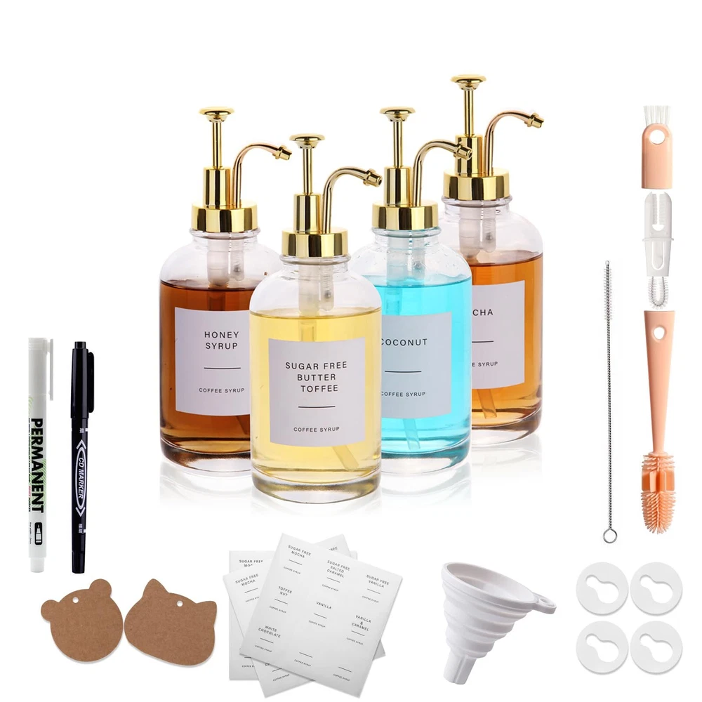 Coffee Syrup Dispenser,Coffee Bar Accessories,4-Pack,16.9 Ounce,Syrup Dispens...