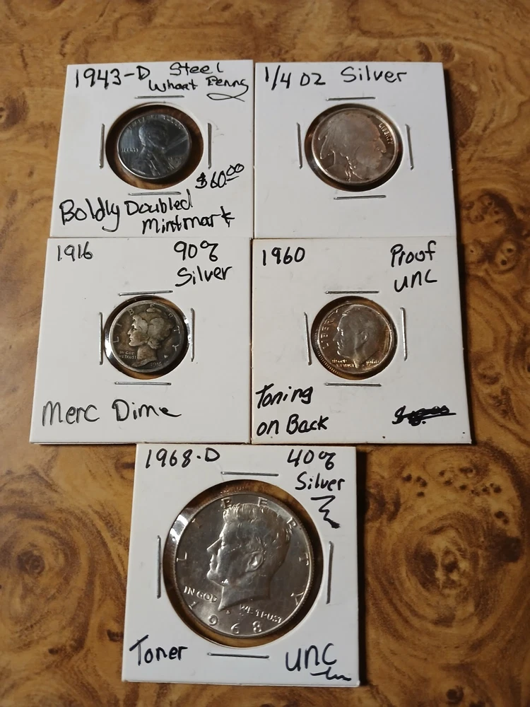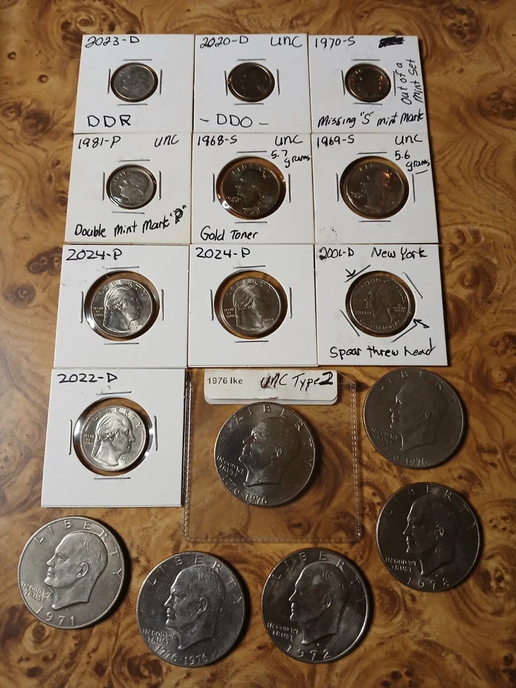 3x HALF POUND .999 COOPER BARS. 10x 1oz COOPER SQUARE. SILVER 10.4 GRAMS. 5X 10 GRAM SILVER BARS. 5X 1 GRAM SILVER BARS. 3X 5 GRAM TRUMP SILVER ROUNDS. 4X PCGS SLABS. 13 ROLLS WHEAT PENNY'S. THERE IS A TOTAL OF 1000 TRULY UNSERCHED WHEAT PENNY'S. 1977-S $1 PF69 ULTRA CAMEO. 1943-D MS 65 5FS. 1958-D 1C. MS 66 RD. 8X GEM STONE SLABS. SAPPHIRE. RUBY. TANZANITE. EMERALDS. 1912 BARBER DIME. 1916 MERCERY DIME. 1945 WASHINGTON QUARTER. 1960 UNCERTALATED ROOSEVELT DIME TONER. 1943-D STEEL WHEAT PENNY. BOLDLY DOUBLED MINTMARK. 1968-D UNCERTALATED TONER 40%SILVER KENNEDY HALF DOLLAR. 1945-P. 1945-D. 1943-S 35%SILVER WAR NICKLES. BOX OF 90 COINS. PENNY'S. BUFFALO NICKLES. JEFFERSON NICKLES. INDAIN HEAD PENNY'S. V-NICKLE. WASHINGTON QUARTERS. KENNEDY HALF DOLLARS. 95% OF THEM ARE UNCERTALATED AND PROOFS. 1oz COOPER ROUNDS. OLD CASINO TOKENS. DATES 1958 TO 2000. Lots of great coins for the price