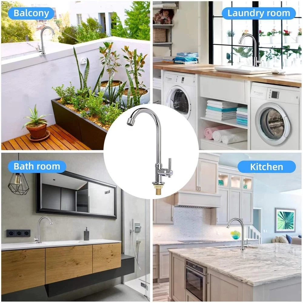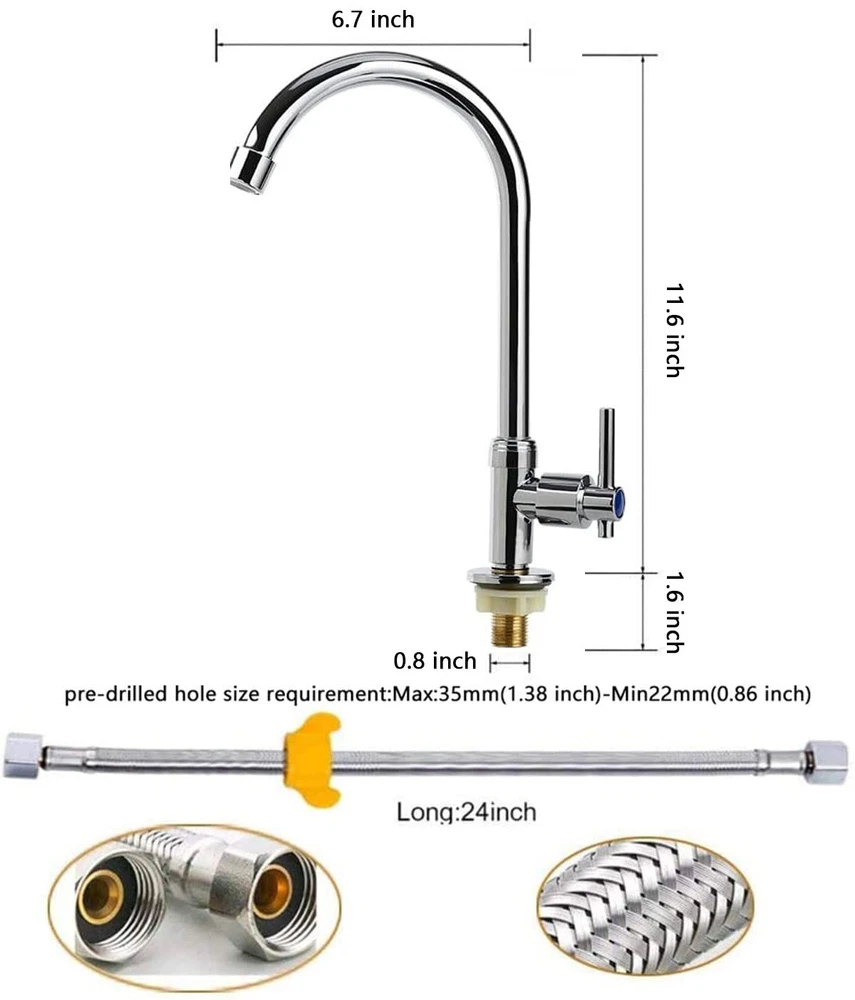 Choose UBETT Faucet Advantage ★Reliable Ceramic Cartridge-Excellent ceramic disc cartridge can survive 500,000 times open & close test. Control precision and no drip off. ★ Pressure Tested-Each faucet is tested at high water pressure to ensure high quality and long durability. ★High-arch 360 Degree Rotatable Gooseneck Spout and Ultralong Spray Hose for Wide Range Clearance of Sink. ★90-day Moeny Back Guaranteed-When you order today, Our world class customer service that's ready and available to address your concerns at any time. Superior lead-free single cold bathroom/kitchen faucet, complies with all State and Federal low-lead regulations. No any harmful substance,safe and healthy for your family. High-arch spout design with 360-degree rotation offers more room for a variety of sink activities.Fashionable linear,high-precision electroplating,smooth and glossy surface,never fading. High-quality ceramics valve,heat/cold and pressure resistance,anti-cracking,anti-leakage,anti-aging.Durable life up to 50 million times usage. Each faucet provide with a cold water hose.All hardware needed for mounting is included with faucet, easy to installation. Best price and quality faucets are widely used in kitchen,bathroom,bars,restaurants,laundry, outdoor lawns, boat,camper,fish clean table and so on.
