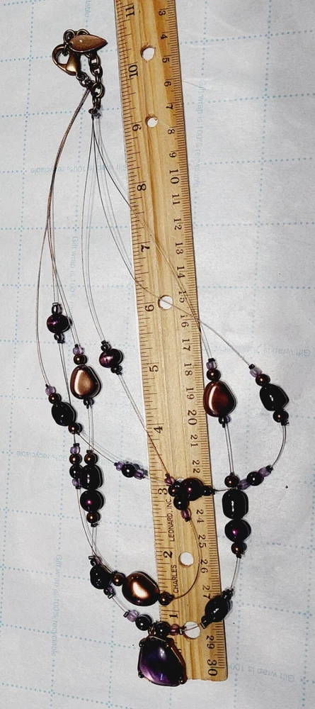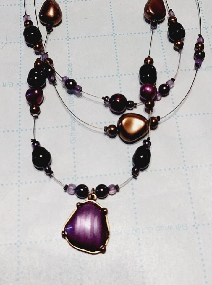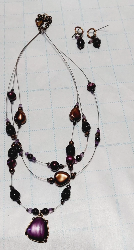 Coldwater Creek Necklace & Earrings Purple Bronze Beads Multi Strand Jewelry
