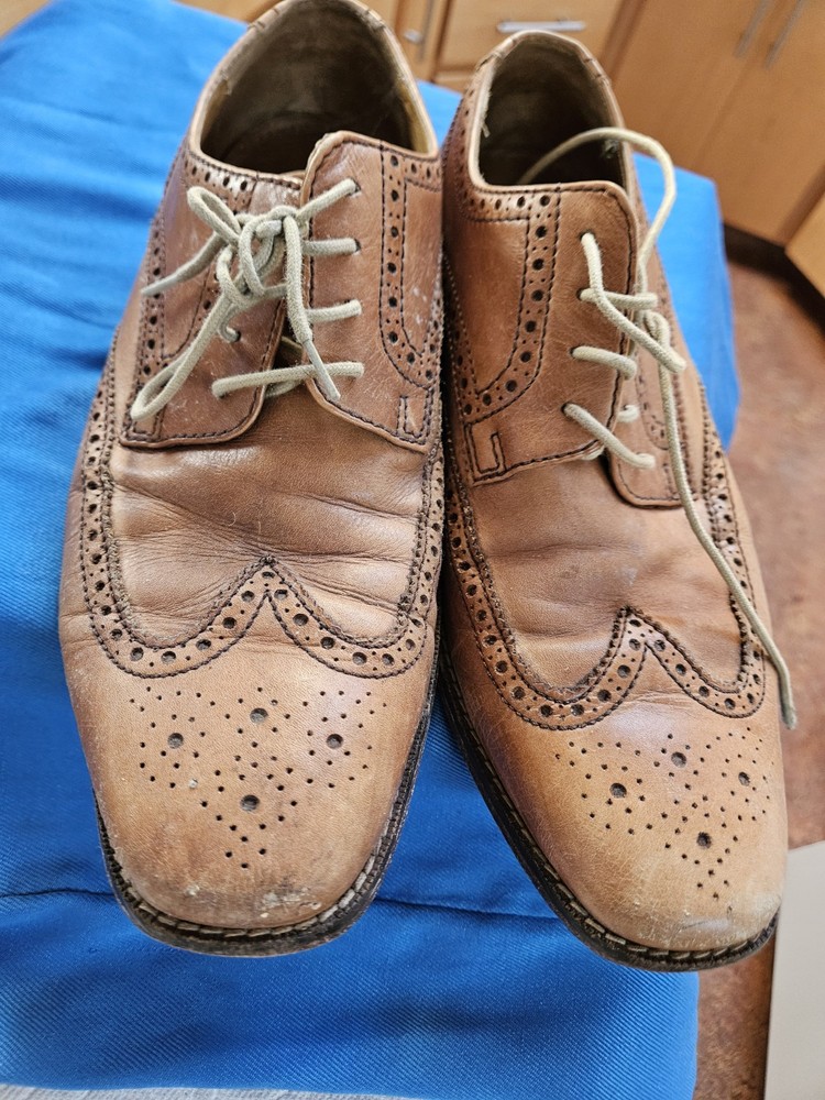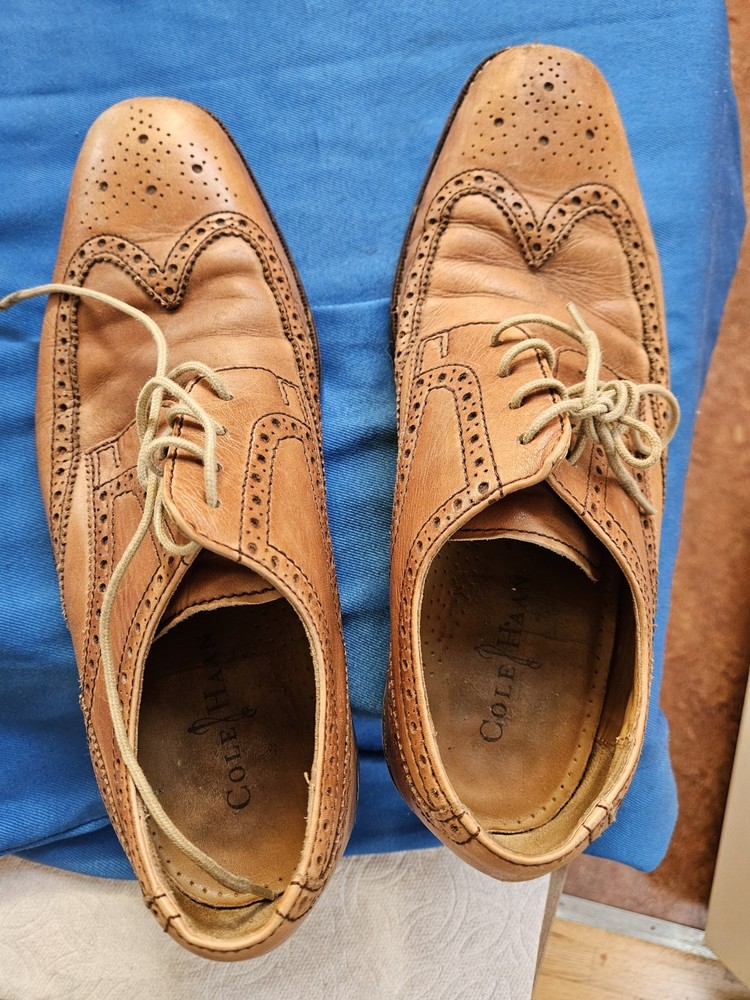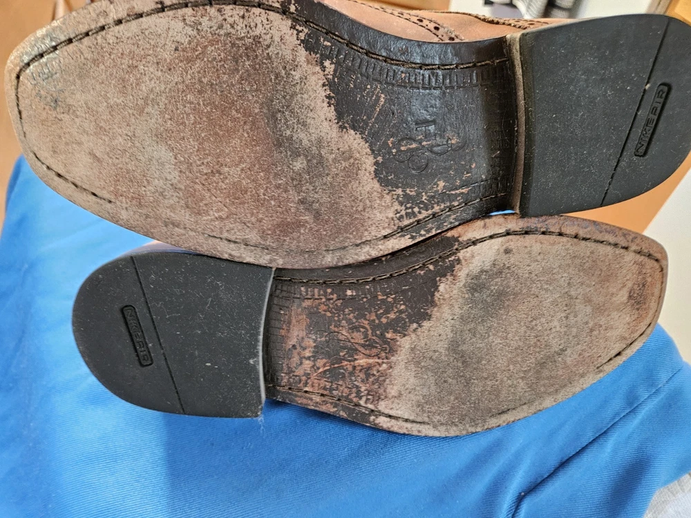 Cole Haan Dress Shoes from ~2011, before Nike sold Cole Haan. Remember the Cole Haan LunarGrand? These aren't it, but these dress shoes have a Nike Air bag in them! I had the highest vertical during all my interviews. Only got hired once in them, but once is all you need.