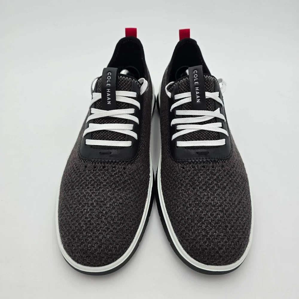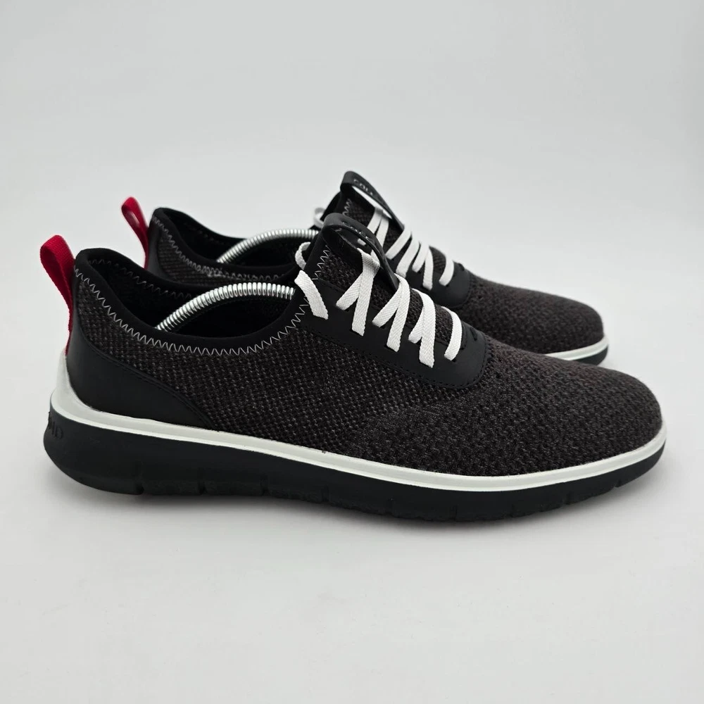 Elevate your casual style with these Cole Haan Generation Zerogrand Stitchlite Dress Sneakers. Perfect for any occasion, whether it's a night out with friends or a casual day at the office. These sneakers feature a round toe and lace-up closure for a comfortable fit. The synthetic upper material is lightweight, breathable, and durable, making it perfect for all seasons. These sneakers come in a sleek black color with a solid pattern and are part of the Cole Haan Zerogrand product line. The synthetic lining material is also lightweight and breathable, ensuring your feet stay comfortable all day long. With a shoe width of M and a US shoe size of 11.5, these sneakers are perfect for men who want a stylish and comfortable look.