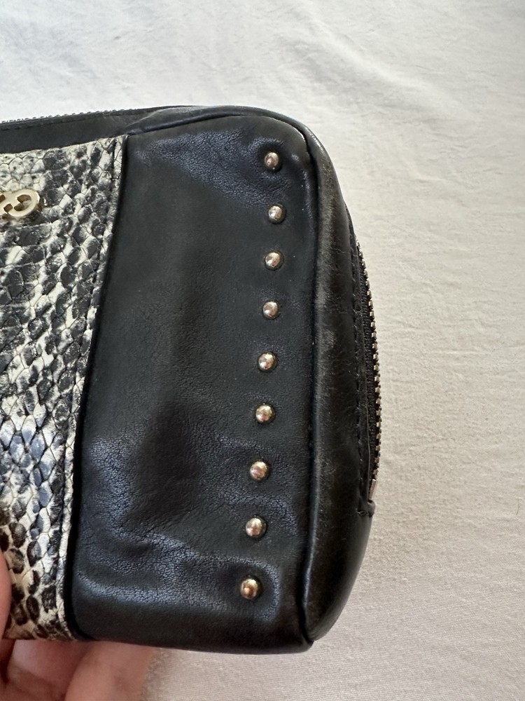 Cole Haan snakeskin studded wristlet. Shows some wear as shown in pic #3 otherwise in good condition.