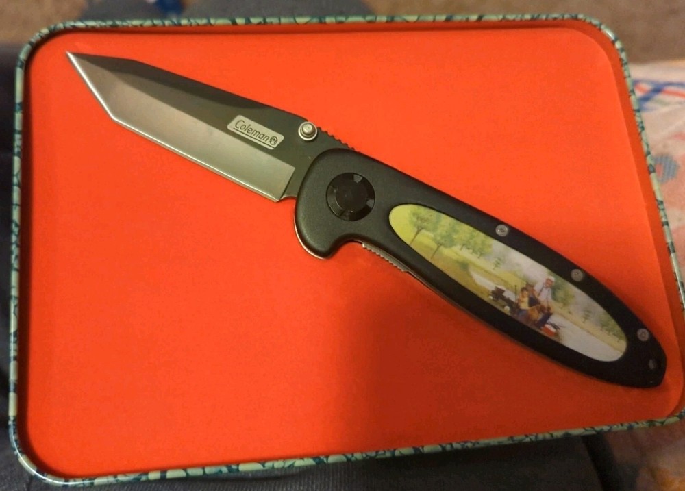 The Coleman 900 Tin CM1930 Lockback Knife is a tactical folding knife with a lockback mechanism for safety. Made by Coleman in the United States, this ambidextrous knife features a single original blade with a plastic handle. The knife comes in a presentation tin, making it a practical and stylish addition to any collectibles or everyday carry items. Its modern design and quality craftsmanship make it a valuable find for collectors or outdoor enthusiasts.