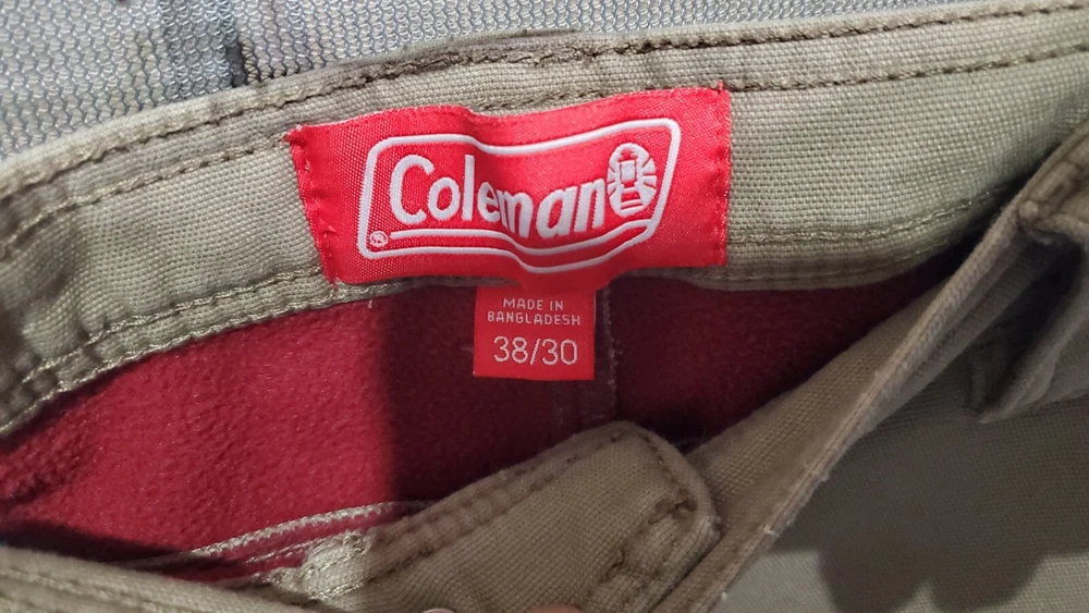 Stay warm and stylish this fall and winter season with these Coleman insulated outdoor tan camping working pants. Perfect for men who love to travel, do casual workwear, or need work pants for their outdoor jobs, these pants are made of a combination of polyester and cotton, ensuring both comfort and durability. The pants feature a zip closure, 5-pocket design, and straight leg style, making them both functional and fashionable. With a waist size of 38 inches and inseam of 30 inches, these pants are perfect for regular-sized men. The brown color gives them a classic and versatile look that can be easily paired with any shirt or shoes. These pants are not just great for the colder months, but can also be worn during fall. Get your hands on these Coleman insulated outdoor tan camping working pants, perfect for any outdoor activity.