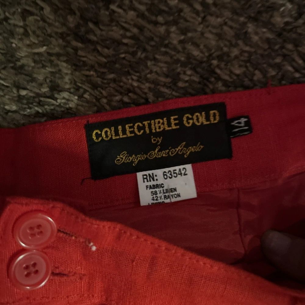 Collectible Gold Giorgio Sant Angelo Linen Rayon Red Pants Womens Size 14 Pleats. Condition is Pre-owned. Shipped with USPS Ground Advantage.