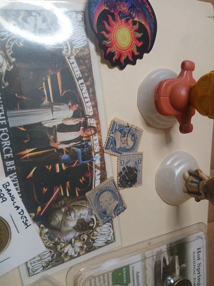 Lot#3 This is a collectible junk drawer coin lot from the United States, featuring various items such as an 1897 Indian Head coin, a 1997 JFK Unc coin, and Star Wars collectibles. The lot includes over 20 items and is a mix of different collectibles, making it perfect for collectors or those interested in a variety of items from different eras. The lot offers a diverse range of collectibles that may appeal to a wide range of collectors.
