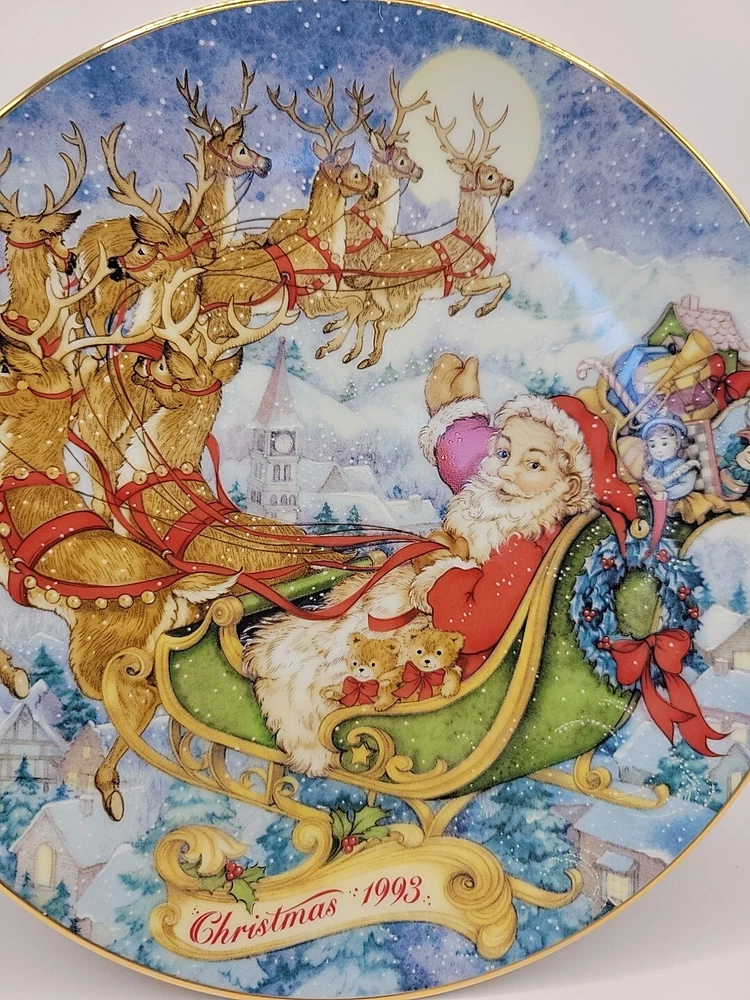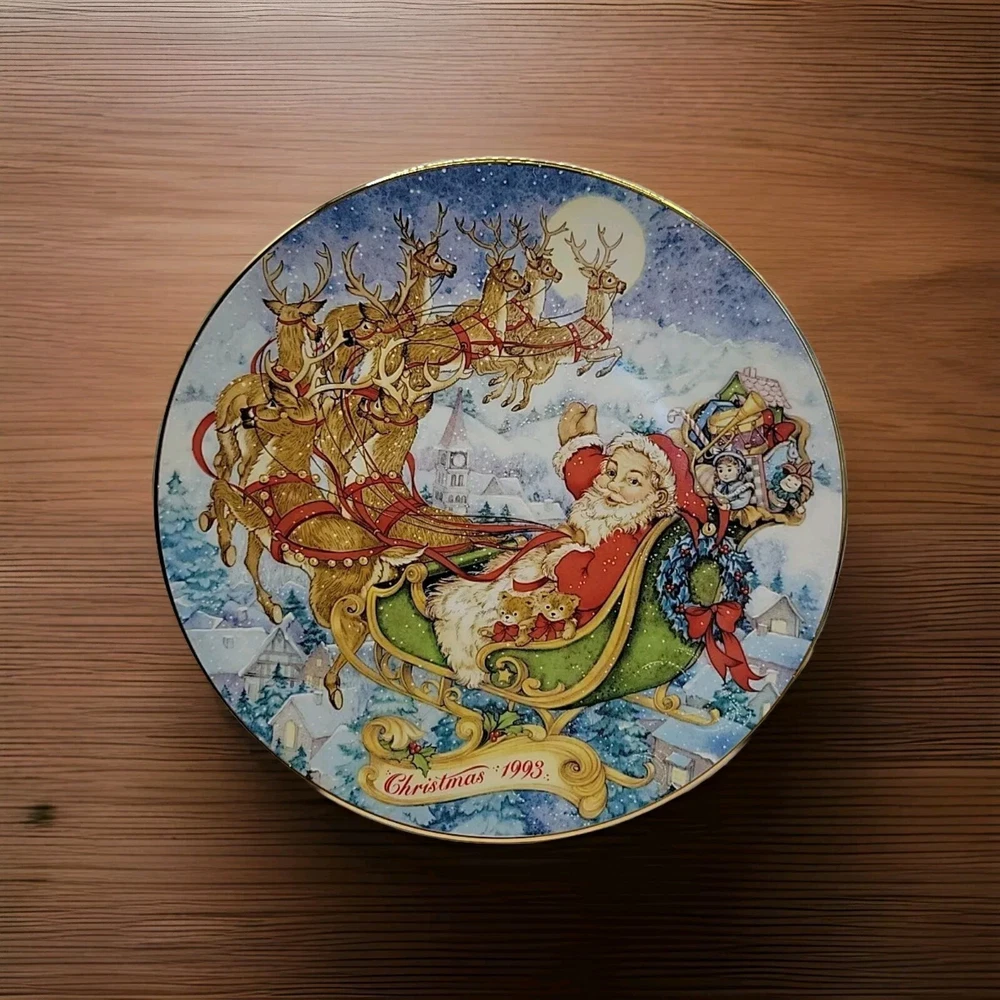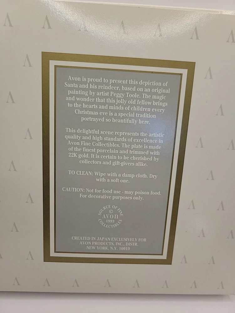 This Avon collector plate is a must-have for any Christmas decoration enthusiast. Featuring a colorful design of Santa's sleigh, reindeer, and a festive wreath, this 8-inch plate is perfect for displaying on a shelf or tabletop. Made in China in 1993, this plate is part of the Avon product line and is a great addition to any collection of decorative collectibles. The plate is in excellent shape and comes with an unknown California Prop 65 warning. Get your hands on this unique piece of American culture today!