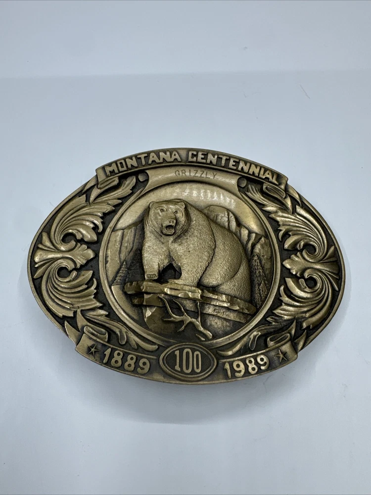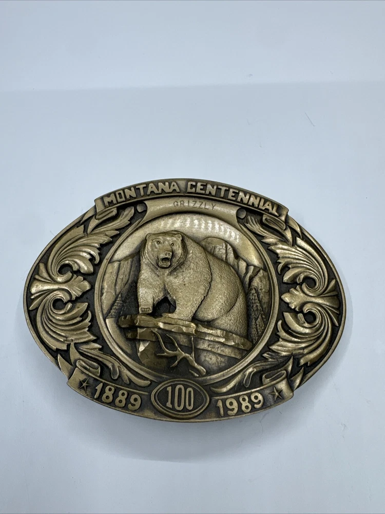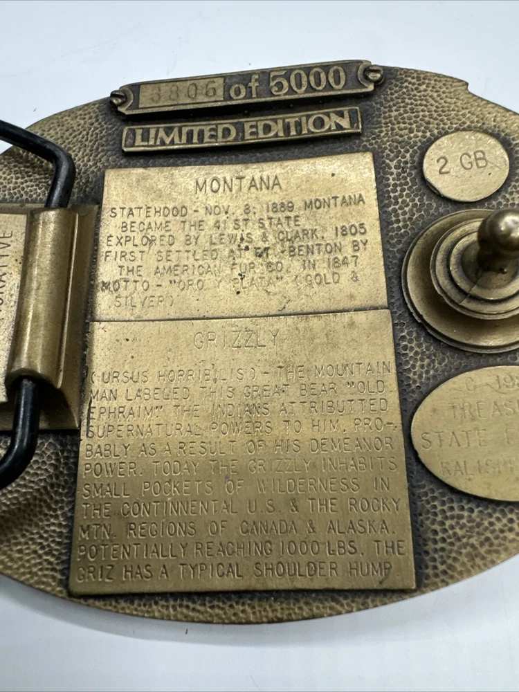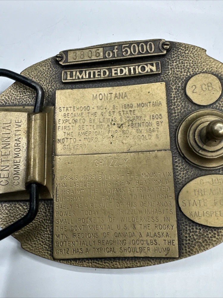 Collectible Vintage Montana Centennial 1889 1989 Grizzly Ltd Ed Belt Buckle. Shipped with USPS Ground Advantage.