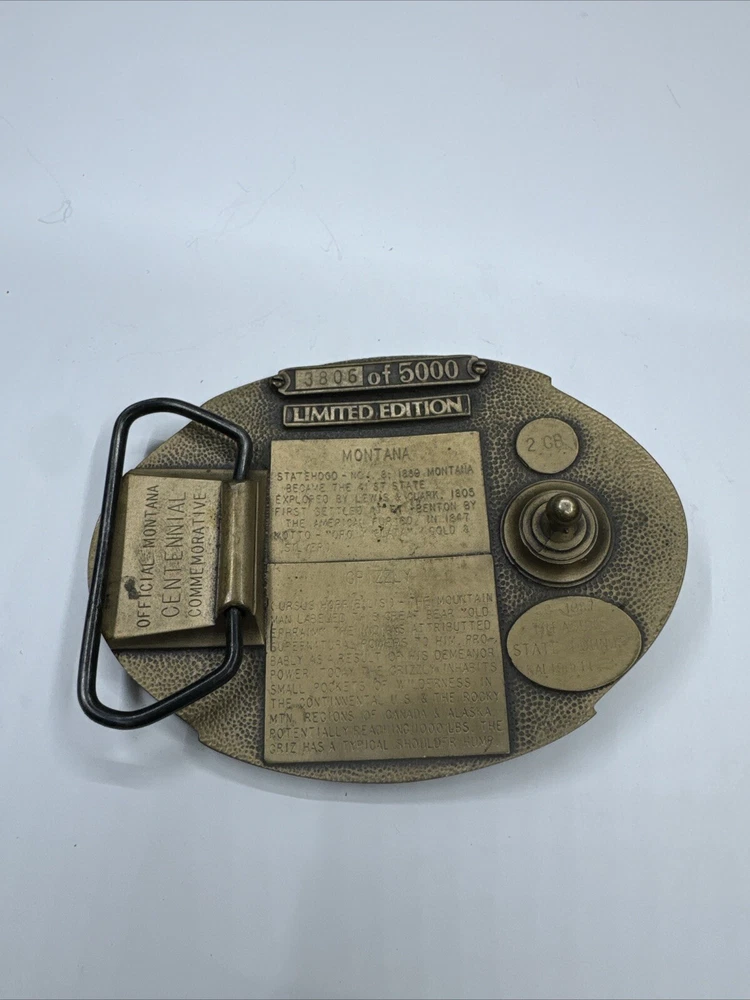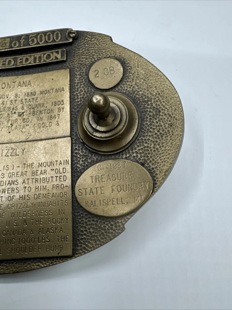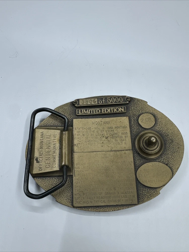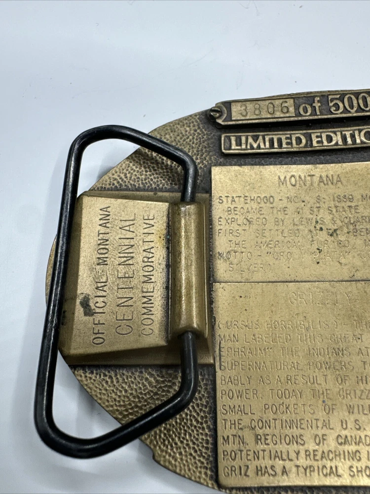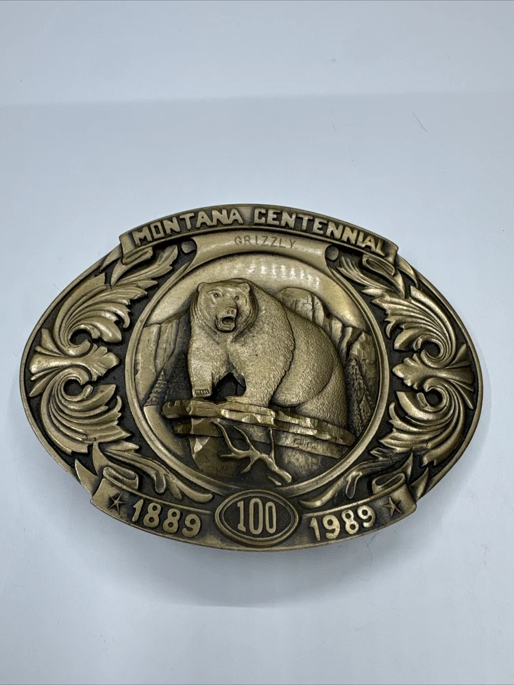 Collectible Vintage Montana Centennial 1889 1989 Grizzly Ltd Ed Belt Buckle. Shipped with USPS Ground Advantage.