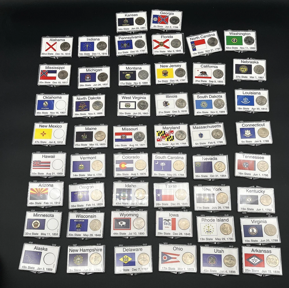 Statehood Quarter Collection This is a nearly complete collection of Statehood Quarters, the six states not represented are: OK, NM, HI, AZ, MN, AK. These coins appear to have been taken out of circulation - they're not proof but I would say they are near mint. That said, I am not a qualified coin grader. Quit a jumpstart here on building a compete set of these coins.