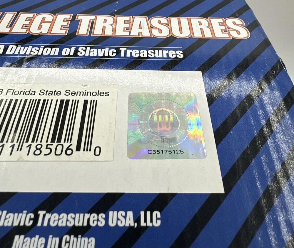 Show off your team pride this holiday season with this College Treasures Florida State Christmas Stocking Holder. Perfect for any fan of the Florida State Seminoles, this stocking hanger features the team's iconic logo and colors of red and yellow. It's a great addition to any collection of fan apparel and souvenirs, and is sure to be a conversation starter during the festive season. This product is designed for unisex adults and is licensed collegially, ensuring that you are getting a high-quality and authentic product. Get ready to show off your team spirit this holiday season with this unique and fun stocking holder! Measures 7"x4.5"x3" plus hook. **Pre-owned condition. The stocking has broken off but is included. Could be glued back on. See photos.