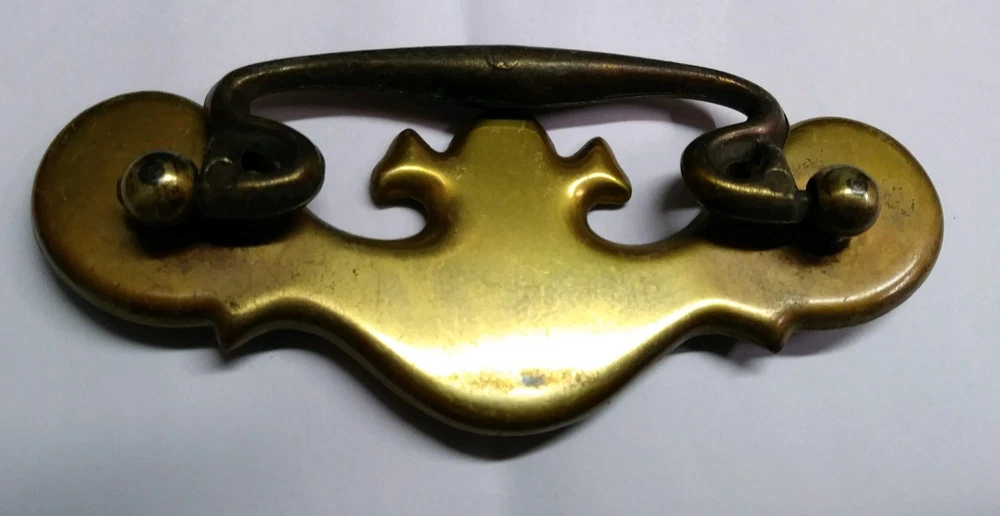 Decorative Cabinet/Furniture Hardware! in harder to find sizes & Shapes! Two Hole application Drop bail Pull 3" C-C mounting holes Polished Brass Finish- aged- each varies in finish from age Used hardware off old dresser Has matching larger 2-1/2" C-C bail in separate listing Shipping •Most products ship within 1 business day (Mon-Fri) of receiving cleared payment. Exceptions, such as custom items, will be noted in listing. •On each of our listings under the shipping tab at the top of page explains the multi-item discounted shipping rule for this listing. eBay will calculate and apply when you use the add to cart tab. You must use the add to cart tab- otherwise eBay treats them as independent orders and will calculate shipping at highest rate for each. •We do ship to Post Office box addresses, but we also ship a lot with UPS so a street address may be needed. •We do ship to Alaska, Hawaii, and Puerto Rico. (May incur an extra charge and some items do not qualify) •We do ship some products International. (Note: Only products marked for International shipping will qualify. If an item is not marked email us and we can check if available for International shipping.) •Please remember that weekends and holidays do not count as business days •International shipment times can vary a little due to customs Payment •We accept payments by PayPal. •We do charge sales tax in NC/SC. State taxes will be calculated at checkout. Returns •We offer a 30-day money back or exchange on all items except custom plaques/mailboxes. •Buyer pays return shipping costs. Customer support •Our customer support is available Monday to Friday from 9am - 5pm •Please contact us through our eBay messaging system.