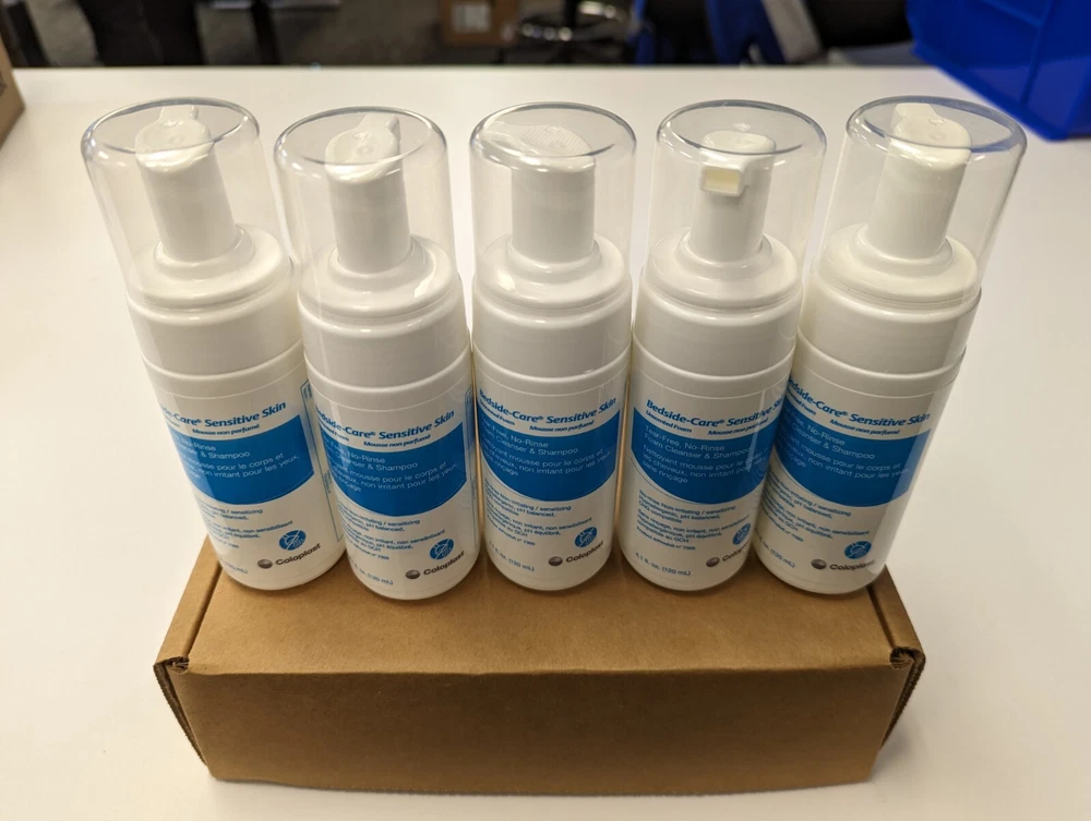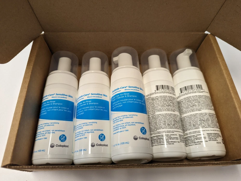 Coloplast Bedside-Care Sensitive Skin, Unscented Foam, Tear-Free, No-Rinse, Foam Cleanser & Shampoo, No. 73000, 5-pack This product is not marked with an expiration date. No-rinse body wash, shampoo and incontinence cleanser moisturizes and conditions skin pH balanced to help maintain natural acid mantle of the skin Alcohol-free Coloplast Product No. 7300