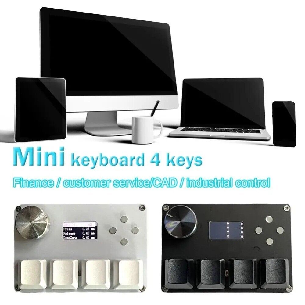 Product Description Color Screen Rapid Trigger Game Programming Mechanical Keypad Knob Game Keyboard Features: 1.USB 2.0 High Speed 8000HZ. 2.The trigger stroke can be customized, the shortest is 0.05mm. 3.Release schedule customization, support Rapid Trigger. 4.Supports any magnetic pole and magnetic axis, and calibration only needs a simple click. 5.0.96-inch IPS color screen, visible key travel, key counting, etc. 6.The first line of text on the main screen can be customized, such as writing your own ID. 7.The knob can also be set to any key, such as for scrolling through a list of songs. Tips: 1.Due to the light and monitors effect, colors may have lightly difference. 2.Please allow slightly size errors due to manual measurement. Thank you for your understanding! Specifications: Color: White/Black Wire: Type-c Wire Shaft: Magnetic switch Package include: 1* Keyboard 1* Cable If you have any questions, please feel free to contact us via ebay. We usually respond within 24 hours. Payment Shipping Returns Contact Us We accept all verified payments from ebay. Orders will be shipped after receiving cleared payment. Payment due within 7 days after auction ends and for buy it now listings. We ship most of our orders within 24 hours, and may up to 48 hours for. If you want faster shipping way. Please contact us before making payment. Sometimes due to problems with our transportation company system, your shipping information may be delayed to update. We recommend that you try again after 3-4 days. If you still haven't checked the shipping information, you can contact us by ebay message. Always believe we can figure things out with communication, if it comes to return, the pacakge must be intact and the same as you receive. If you have any questions, please feel free to email our service specialists 24 Hours a Day, 7 Days a Week. We will reply you ASAP. Return/refund is accepted within 30 days after the buyer receives the item. NO exchange will be accepted after 30 days from the date when the item is received. Please contact us first before returning your product!!! If you have any questions, our Customer Service staffs welcome you to email us. We strive to answer all questions and resolve any problems as quickly as possible. You can contact us 7*24, we will reply at the first time, and we will surely solve your problems. Note: 1.We try our best to reply to your emails as soon as possible, however, due to high volume of daily incoming emails and time zone difference, we may not be able to reply your emails immediately. Please allow 1 business days for us to response. If you do not receive any reply from us, please check your email ensuring your mailbox has not reached full size. 2.Due to some ISP SPAM filter settings, you may not be able to receive our replies; if you have problems receiving our emails, you may need to use a different email account to contact us. 3.Please give us the opportunity to resolve any problem. We understand the concerns and frustrations you might have, and will try our best to resolve the issues. Please email us before leaving any negative feedback or open any dispute on PayPal. 4.We care about our valued customers, and will always try to help you. So if you have any problems, please e-mail us immediately. Payment We accept all verified payments from ebay. Orders will be shipped after receiving cleared payment. Payment due within 7 days after auction ends and for buy it now listings. Shipping We ship most of our orders within 24 hours, and may up to 48 hours for. If you want faster shipping way. Please contact us before making payment. Sometimes due to problems with our transportation company system, your shipping information may be delayed to update. We recommend that you try again after 3-4 days. If you still haven't checked the shipping information, you can contact us by ebay message. Returns Always believe we can figure things out with communication, if it comes to return, the pacakge must be intact and the same as you receive. If you have any questions, please feel free to email our service specialists 24 Hours a Day, 7 Days a Week. We will reply you ASAP. Return/refund is accepted within 30 days after the buyer receives the item. NO exchange will be accepted after 30 days from the date when the item is received. Please contact us first before returning your product!!! Contact Us If you have any questions, our Customer Service staffs welcome you to email us. We strive to answer all questions and resolve any problems as quickly as possible. You can contact us 7*24, we will reply at the first time, and we will surely solve your problems. Note: 1.We try our best to reply to your emails as soon as possible, however, due to high volume of daily incoming emails and time zone difference, we may not be able to reply your emails immediately. Please allow 1 business days for us to response. If you do not receive any reply from us, please check your email ensuring your mailbox has not reached full size. 2.Due to some ISP SPAM filter settings, you may not be able to receive our replies; if you have problems receiving our emails, you may need to use a different email account to contact us. 3.Please give us the opportunity to resolve any problem. We understand the concerns and frustrations you might have, and will try our best to resolve the issues. Please email us before leaving any negative feedback or open any dispute on PayPal. 4.We care about our valued customers, and will always try to help you. So if you have any problems, please e-mail us immediately. powered by
