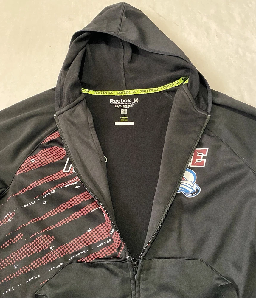 Size:LGender:MenPlayer:N/ASport:Hockey-NHLBrand:Reebok NHL Center IceProduct:Jacket HoodieUPC:Does not applyLeague:National Hockey League (NHL)Seller Notes:“Good condition as seen in photos.”Country/Region of Manufacture:Vietnamgtin13:Does not applyOfficially Licensed:YesTeam:Colorado AvalancheModified Item:NoColor:BlackPre & Post Season:Regular Season