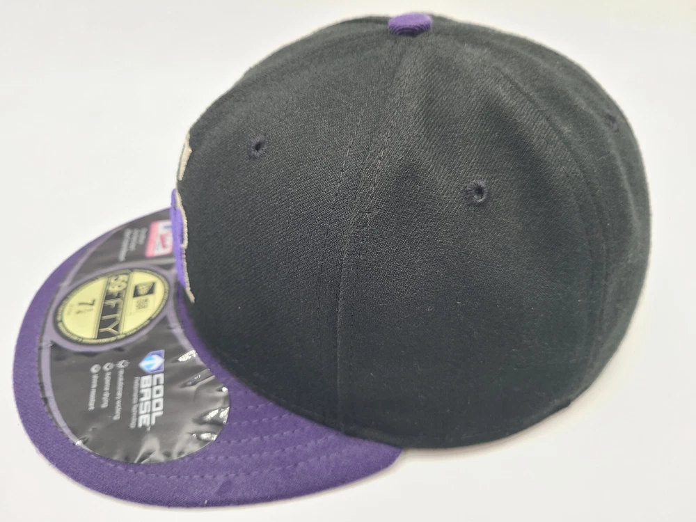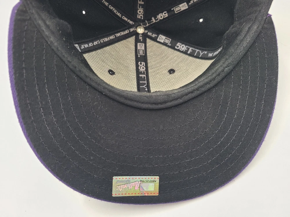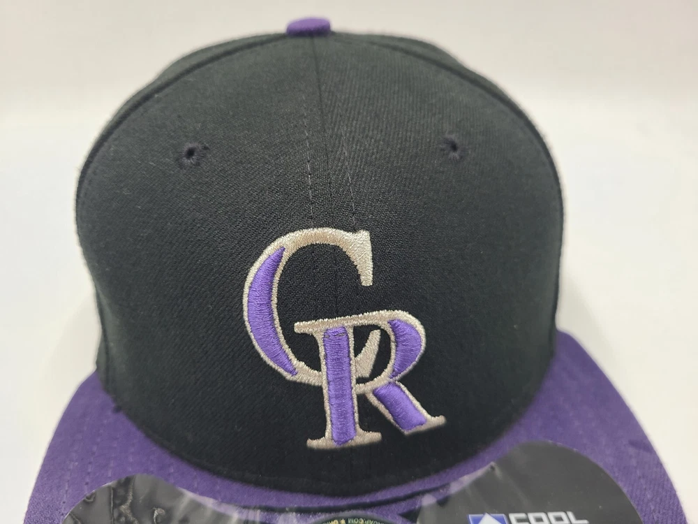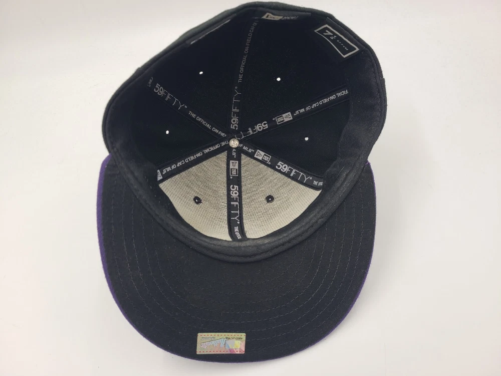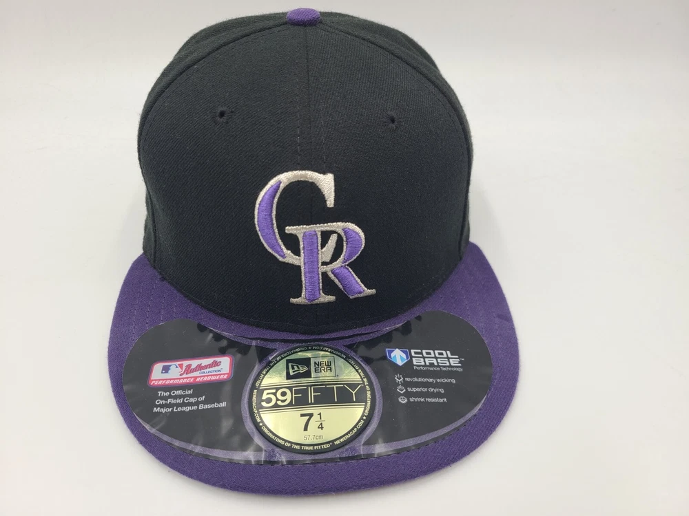 It seems like there will be a mark left over is the sticker is removed. Also has some stains on the brim and wear underneath the brim as seen in photos. Colorado Rockies New Era 59Fifty Fitted 7 1/4 Hat Cap MLB Baseball Black Purple. EACH ADDITIONAL HAT PURCHASED IS ONLY $1 ADDED SHIPPING!