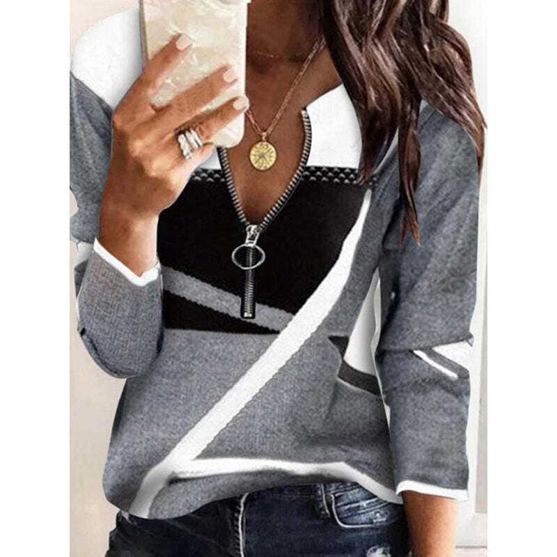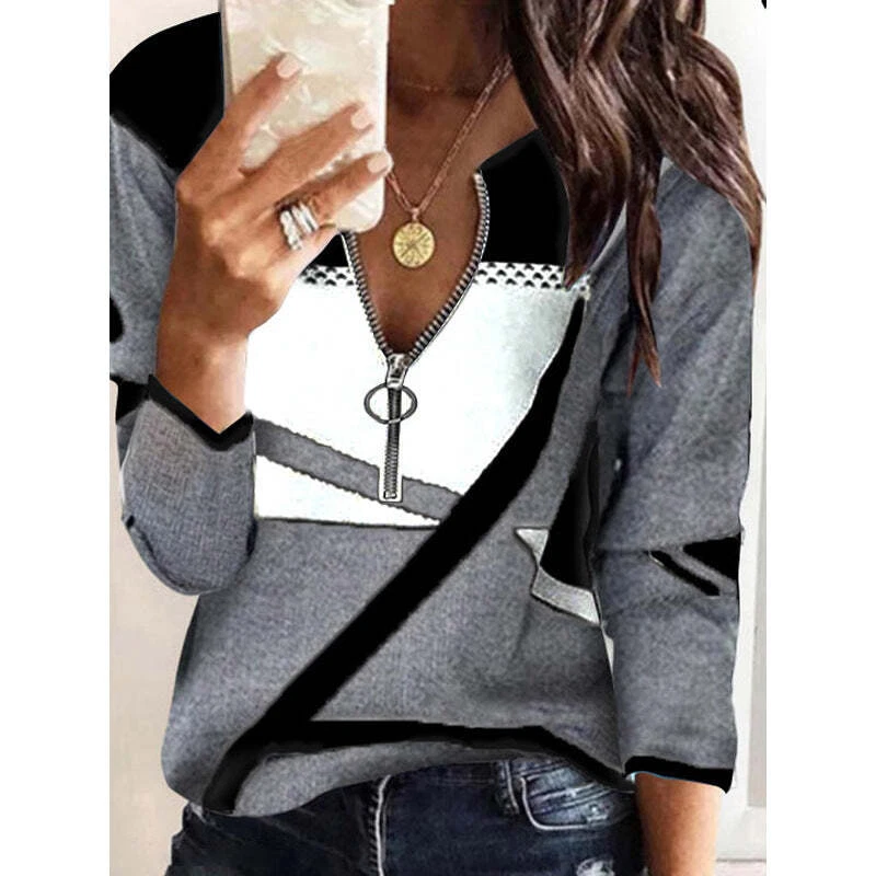 Product information: Supply category: Spot Fabric name: Cotton blended Main fabric composition: cotton The content of the main fabric ingredient: 51%-70% Main fabric composition 2: polyester fiber (polyester) The content of main fabric ingredient 2: 30%-50% Pattern: Geometry Style: Casual Style: Hedging Sleeve length: long sleeve Process: Printing/Dyeing Edition type: Loose Length: Medium length (65cm<length≤80cm) Collar type: V-neck Sleeve type: conventional sleeve Popular elements: zipper, contrast color, stitching Color: red and white, gray and white, gray and black, blue and white, green and white Suitable age: 18-24 years old Style type: urban casual Size Information: Size: S, M, L, XL, 2 XL, 3 XL, 4 XL, 5 XL Size/cm Bust Sleeve Length S 95 59 68 M 100 60 69 L 105 61 70 XL 110 62 71 2XL 115 63 72 3XL 120 64 73 4XL 125 65 74 5XL 130 66 75 Note: 1. Asian sizes are 1 to 2 sizes smaller than European and American people. Choose the larger size if your size between two sizes. Please allow 2-3cm differences due to manual measurement. 2. Please check the size chart carefully before you buy the item, if you don't know how to choose size, please contact our customer service. you know, the different computers display colors differently, the color of the actual item may vary slightly from the following images. Packing list: Women's sweater*1 Product Image: