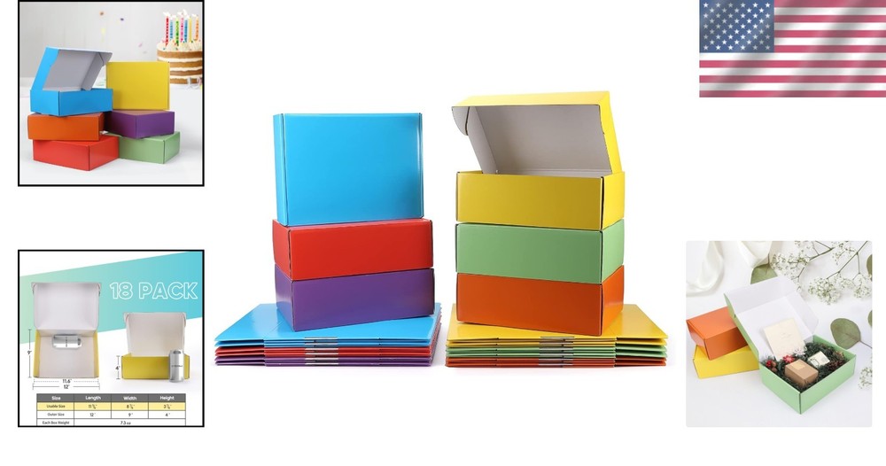 Colorful 12x9x4 Inch Gift Shipping Boxes Bulk 18 Pack ‹ › ‹ › ‹ › ‹ › ‹ › ‹ › ‹ › ‹ › Colorful 12x9x4 Inch Gift Shipping Boxes - Bulk 18 Pack Elevate Your Gifting Experience! Vibrant Variety Available in 6 stunning colors that add delight to any occasion. Perfect for gifts - simply add a ribbon or a fun sticker to personalize! Perfect Medium Size Dimensions: 12x9x4 inches (LxWxH). Inner size: 11.6x8.9x3.9 inches after closure, ideal for a variety of gifts. Effortless Assembly Convenient and quick – these corrugated boxes fold together in seconds. Tuck top features two locking tabs to keep your items secure during transit. Professional Packaging Solutions Perfect for small businesses looking for an elegant solution for packaging. Enhances the unboxing experience for your customers! Compact Storage Packed flat for your convenience, with 3 boxes in each vibrant color. 18 pieces total in one carton for efficient shipping and easy storage. Why Choose Our Colorful Gift Shipping Boxes? Transform ordinary gifting into a spectacular experience with our Colorful Gift Shipping Boxes. Each box bursts with vibrant colors, setting the perfect scene for your thoughtful presents. Crafted for ease, the easy-fold design means you can wrap gifts in a flash, while the professional look makes any package feel special. No matter the occasion, these boxes bring joy, excitement, and a touch of elegance. Make each gift memorable - order your 18 Pack today! Shipping Free & Fast Shipping - We offer free shipping to most of the USA with a normal delivery time of 3-10 business days. However, due to various situations, additional delivery time (up to 3 weeks) may be required for some items. Alternative Carriers - We may use alternative carriers (e.g. USPS, FedEx, UPS, etc.) to ensure your package arrives safely and on time. Due to the use of multiple carriers, we are unable to provide a tracking number automatically. Handling Time - Orders are processed and shipped within 1-5 business days of receiving cleared payment. Shipping Restrictions - Shipping to Alaska, Hawaii, Puerto Rico, Guam, and other US territories may incur shipping charges or delivery restrictions. Please contact us before ordering, or your order can be refunded/cancelled. State Restrictions - There may be restrictions based on your state of purchase. For example, certain items may not be shipped to California due to state regulations. Contact for Tracking Updates - If you require tracking updates or have any concerns about the delivery of your order, please feel free to contact us, and we will be happy to assist you. Return 30-Day Hassle-Free Returns - We want you to be completely satisfied with your purchase. If you are not, you can return the item within 30 days of receiving it for a full refund or exchange. Easy Return Process - To start a return, simply contact us and we will provide you with a prepaid return shipping label and detailed instructions. Restocking Fee - There are no restocking fees for returns. However, the buyer is responsible for return shipping costs if the return is not due to a seller's error. Refund Processing Time - Refunds will be processed within 5 business days of receiving the returned item in its condition. Payment We accept all major credit cards, PayPal, and Apple Pay for your convenience. Your payment information is secure and encrypted to ensure a safe and seamless transaction. Please complete your payment within 3 days of purchase to avoid any delays in shipping. Feedback Your feedback is extremely important to us. We strive to provide the best products and customer service possible. If you are satisfied with your purchase, please take a moment to leave us a positive review. If you have any concerns or issues with your order, please contact us before leaving negative feedback. We are committed to resolving any problems and ensuring your satisfaction. Contact Us If you have any questions or concerns, please feel free to out to our customer support team. You can contact us through the eBay messaging system. We are available Monday to Friday, 9:00 am to 5:00 pm EST, and we will do our best to respond to your inquiry within 24 hours. Buy it now and enjoy a pleasant shopping experience! Unit Quantity: 18 Material: Cardboard,Corrugated,Glossy Type: Gift Box Size: Medium Number of Items: 18 Color: Multicolor Occasion: All Occasions Recipient: Multipurpose Origin: California Shape: Rectangular Style: Contemporary
