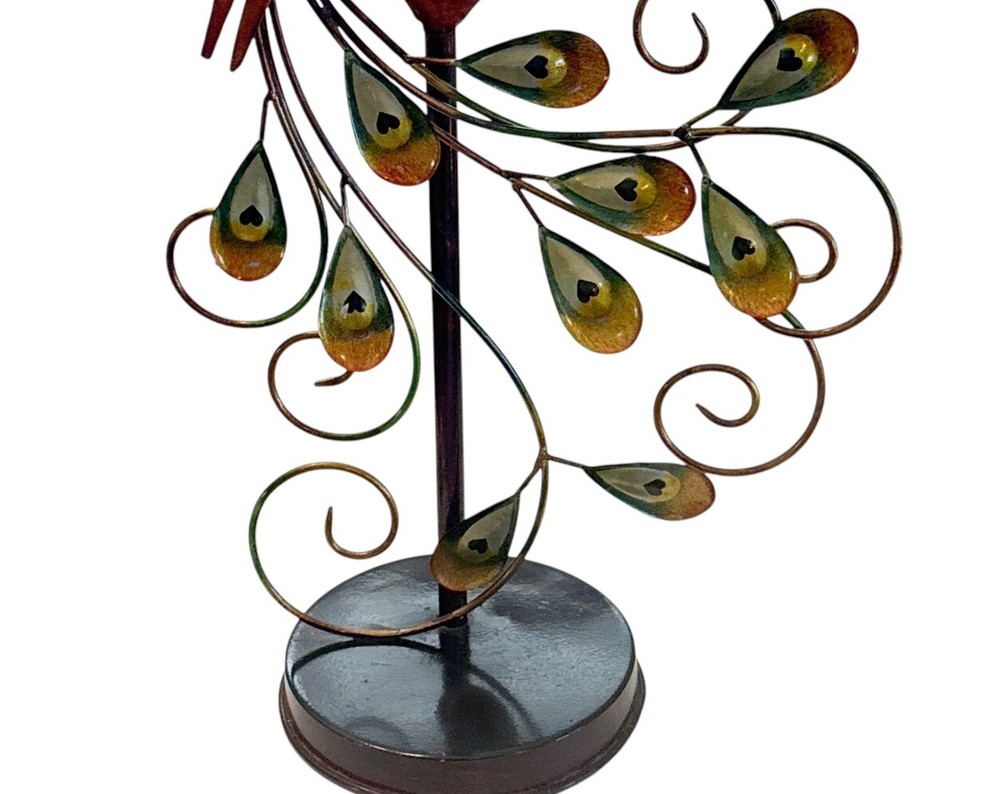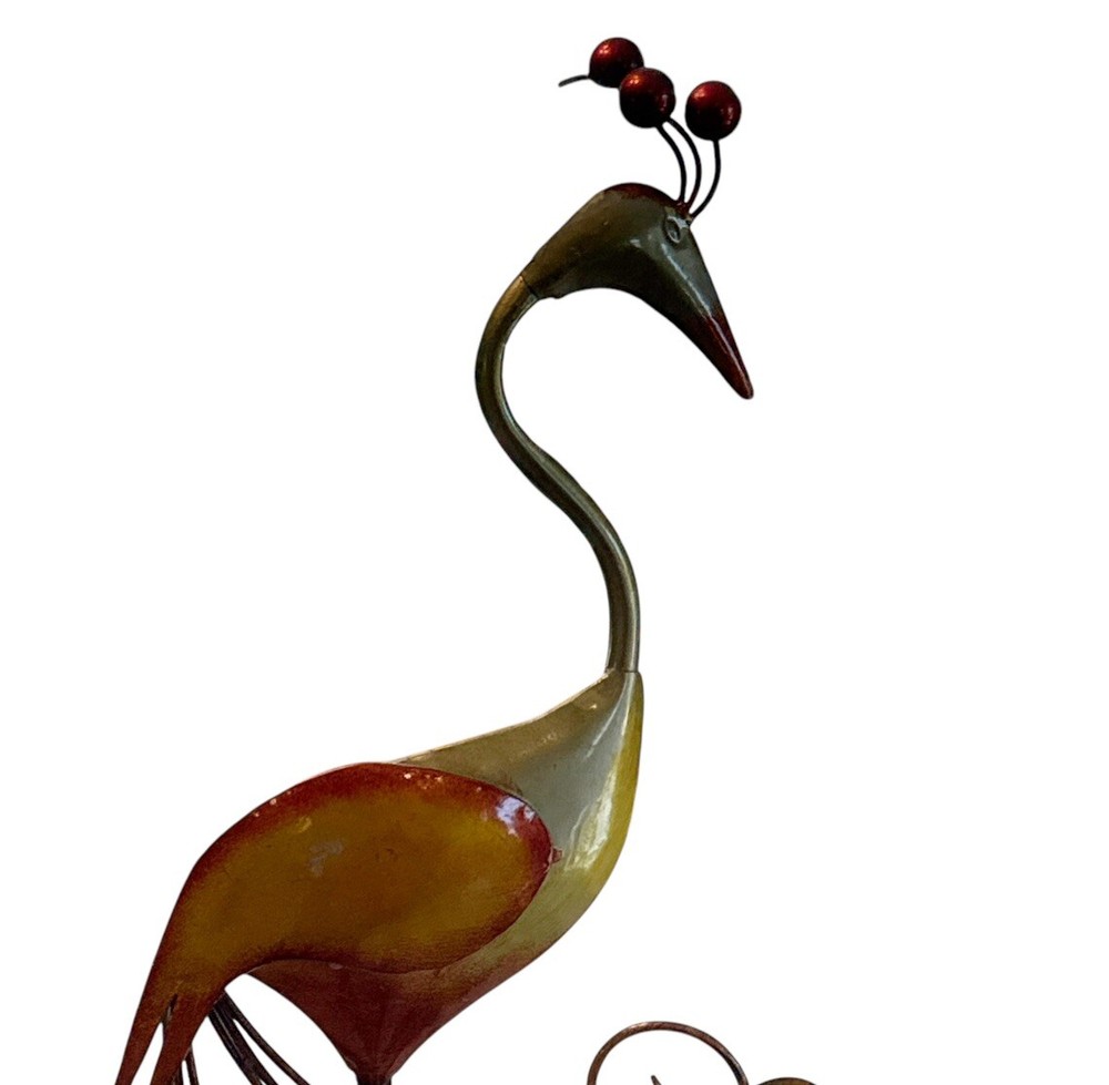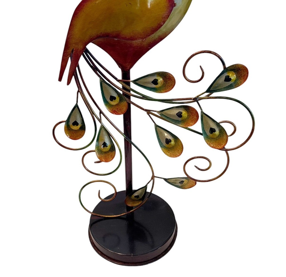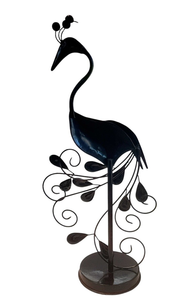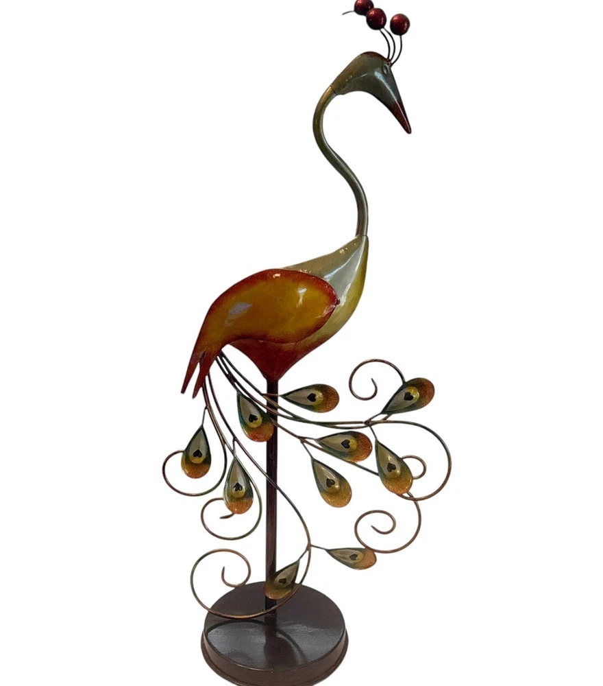 Add a touch of elegance to your garden or porch with this stunning metal statue of a peacock. The bird is beautifully painted with colorful feathers and stands at 27 inches tall. The statue is perfect for any occasion and will add a unique touch to your decor. Crafted from high-quality metal, this statue is easy to care for and can be cleaned with a damp cloth or warm water. The statue features a stand and has a width of 6 inches at the base, with a length of 12 inches at the widest point. This modern style statue is a great addition to any garden or outdoor living space. Smoke free home Please visit my store at https://www.ebay.com/str/theuniqueredhead . Thank you for your consideration. Please message me if you have any questions. I do combined shipping on my items in the store.