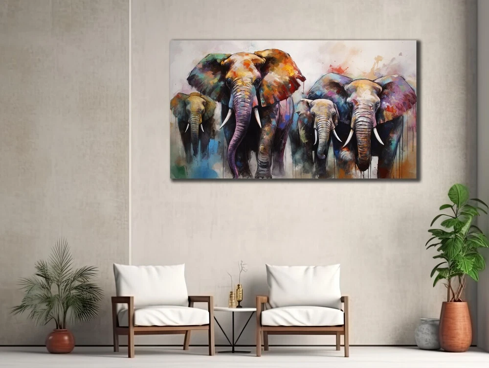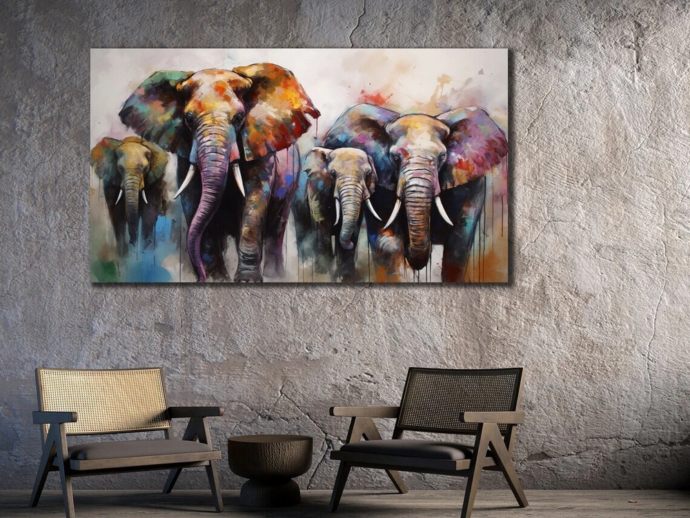 Colorful Abstract Art Elephant Family Unframed Canvas Print Australian Wall Art