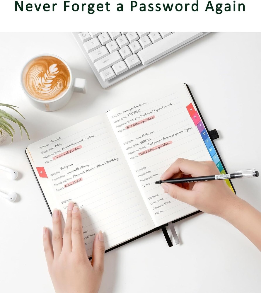 Password Book with Colorful Alphabetical Tabs, 8.4" X 5.8" Hardcover Password Ke Never Forget a Password Again: Tired of forgetting your passwords? Say goodbye to the frustration of constantly juggling and resetting passwords. Our Password Book with Colorful Alphabetical Tabs helps you easily store and keep all your passwords in one secure place, saving you from the hassle of managing multiple passwords, with no visible labels or titles, protecting your sensitive information. Find Your Passwords Quickly & Easily: Need to find a password in seconds? This password keeper with alphabetical tabs makes it simple. With vibrant colors and clear A-Z prints, you can quickly locate what you need, making it a breeze to access your accounts.