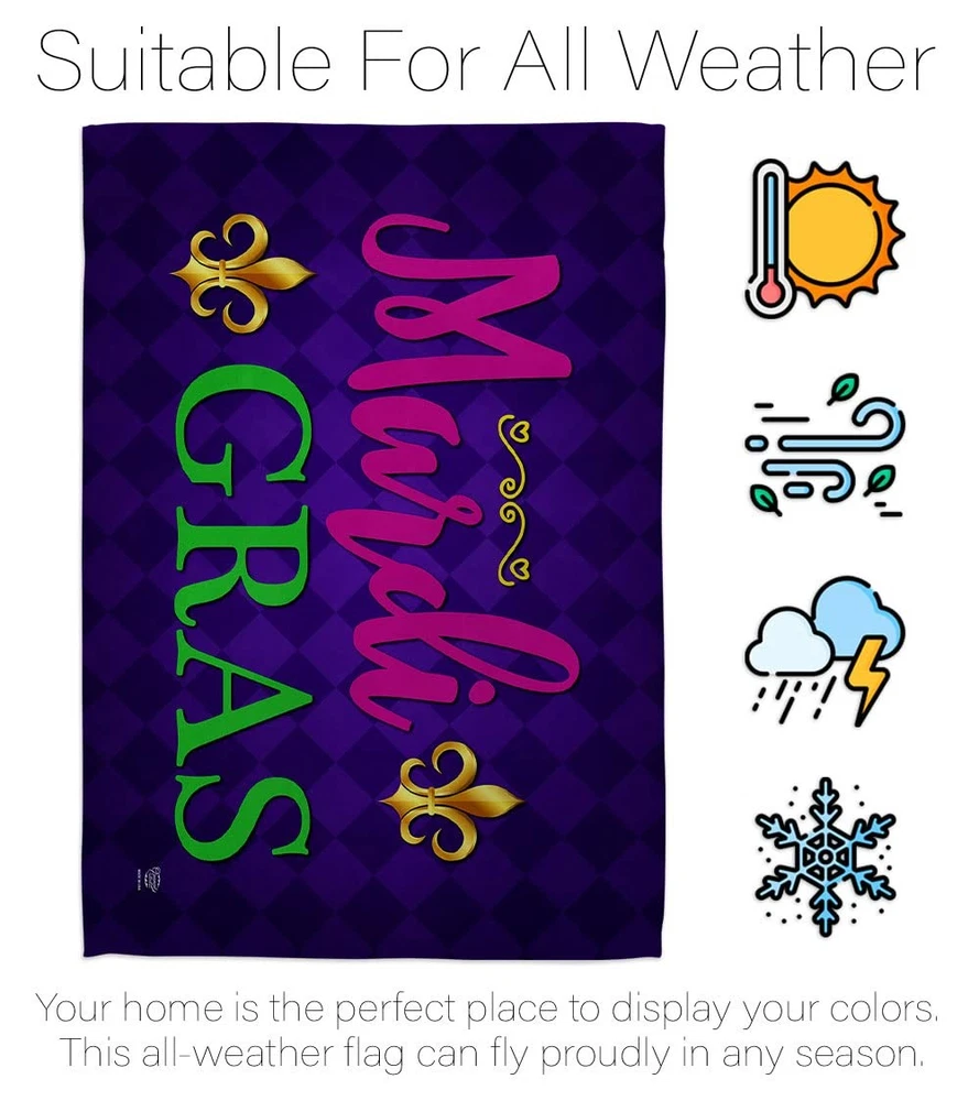 This Mardi Gras flag set is absolutely stunning! The vibrant colors and double-sided design make it pop both indoors and outdoors. The weather-resistant fabric and sturdy stitching ensure it lasts through all seasons. Perfect for adding festive flair to your mailbox, porch, or garden—easy to hang and looks fantastic. Great quality for the price, and it stays vibrant even after weeks outside. Love how it instantly brightens up any space! Highly recommend for anyone wanting to celebrate in style.