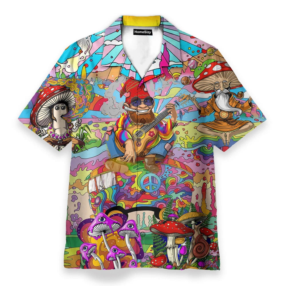 Colorful Mushroom Hippie Funny Buttons Up Shirts Hawaiian Shirt