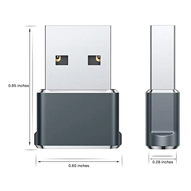 Features: Our aluminum-alloy-bodied dongle occupies very little space and can plug directly onto the end of your USB-A hardware, so you won’for t have to worry about carrying it around. This is a USB-C female to USB-A male adapter designed for charging or data transfer and it will NOT support vidoe transmission. With this little dongle plugged into available standard USB port, your devices power computer) can turn into a USB-C enabled platform. You can easily hook up any USB-C peripherals (USB Type-C cable, USB Type-C USB Type-C hub) that make use of the newer USB-C connector. This adapter offers data transfer speeds of up to 200 Mbps between devices and also supports up to 2 Amps of power output for charging your devices. Enjoy the fast and safe charging. Specifications: Product model: WH-UC2.0-mini Product weight: 3.5g Size: approx. 0.60x0.85x0.28in Product color: black, silver, gray, green, blue, red, gold, rose gold Package Includes: 1PC x USB-C (female) to USB-A (male) Adapter note: No retail package. Please allow 0-1cm error due to manual measurement. pls make sure you do not mind before you bid. Due to the difference between different monitors, the picture may not reflect the actual color of the item. Thank you!