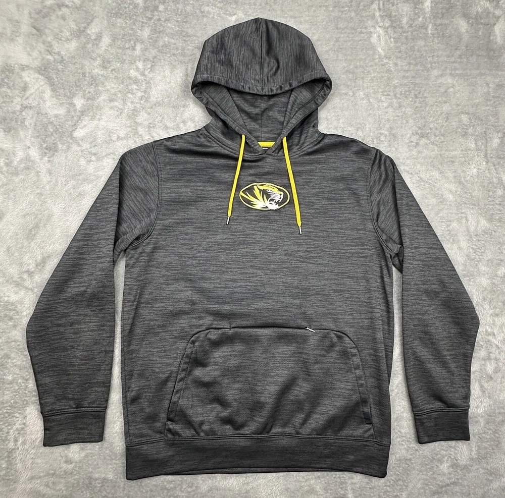 Colosseum Missouri Tigers Hoodie Mens Medium Gray Pullover Sweatshirt Pockets Great pre-owned condition and laundered. Please see measurements in photos. I ship next business day, but sometimes same business day and Saturday if order is paid for early enough. Please let me know if you have any questions. I am open to offers!! Feel free to look at other items in my store! Thanks!
