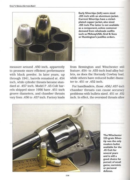 Collector Bookstore Collector Bookstore 724 Delaware Street Leavenworth, KS 66048 Collector Bookstore is a leading specialty retailer of price guides and reference books to inform and educate collectors and professionals in the antiques and collectors markets. Our customers include individual collectors, dealers, appraisers, auctioneers & other industry professionals. You won't receive heavily thumbed shelf copies from us! We buy most titles directly from the publisher and individual authors. Authors are encouraged to submit their reference titles for our consideration. WLF-2013-9781879356887-X2 Colt's Single Action Army: Loading & Shooting the Peacemaker by Dave Scovill ISBN: 9781879356887 Book Title: Colt's Single Action Army: Loading & Shooting the Peacemaker Author: Dave Scovill Binding: Hard Cover with dust jacket Copyright: 2013 Pages: 165 Size: 8.75 x 11.25 in. The Colt Single Action Army is as popular today as it was in the past. This legendary revolver played an important role in the history of the American West. In this detailed volume, Editor Dave Scovill shares his knowledge of how to develop accurate loads for these fine guns and the skills needed to shoot them. From the original first-generation guns to the replicas that are available today, this book is the definitive source on reloading and shooting the Colt Peacemaker. This hard-bound edition contains over 200 full-color photographs and is a worthy addition to any sportman's library. Chapter One: .38 S&W Special Chapter Two: .38 WCF AKA .38-40 Winchester Chapter Three: .41 Colt Chapter Four: .44 S&W Special and The Russian Chapter Five: .44 S&W Special Chapter Six: .44 WCF AKA .44-40 Winchester Chapter Seven: Cast Bullet Loads for Revolvers Chapter Eight: The Mysterious .44s Chapter Nine: .45 Colt Chapter Ten: .450, .455 Colt, .476 ELEY Chapter Eleven: Colts Through the Years Chapter Twelve: The "Other" Colts Source List Burn Rate Chart (Not Prefillable generated 2024-11-06) 77f5e11f0123d63679b23414b0c94273