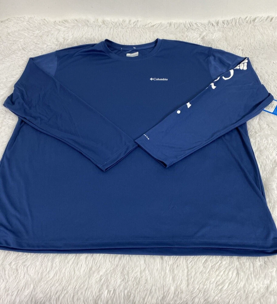 Columbia Shirt Mens Blue Plus Size 4X Omni-Shade Long Sleeve UPF 50 sun Protection new please see pictures for more details and measurements.