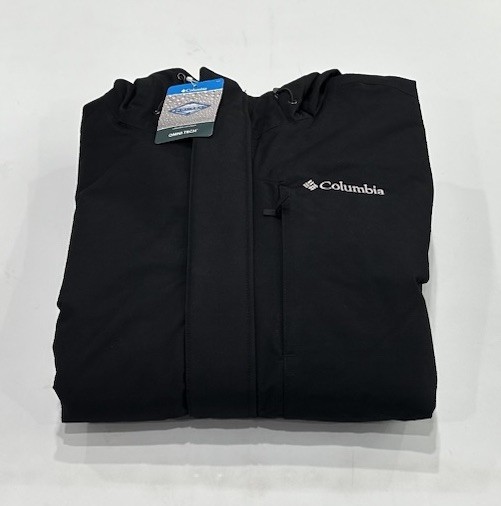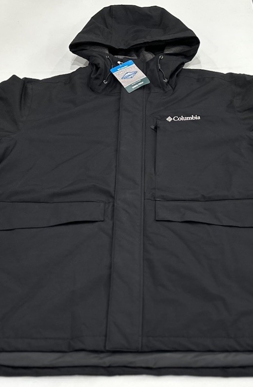 Columbia Men's Omni-Tech Waterproof Breathable Hooded Coat Jacket Size: Large Color: Black Content: Shell: 70% Cotton / 30% Nylon Lining: 68% Polyester / 30% Rayon / 2% Elastane Lower Lining: 100% Polyester Insulation: 100% Polyester